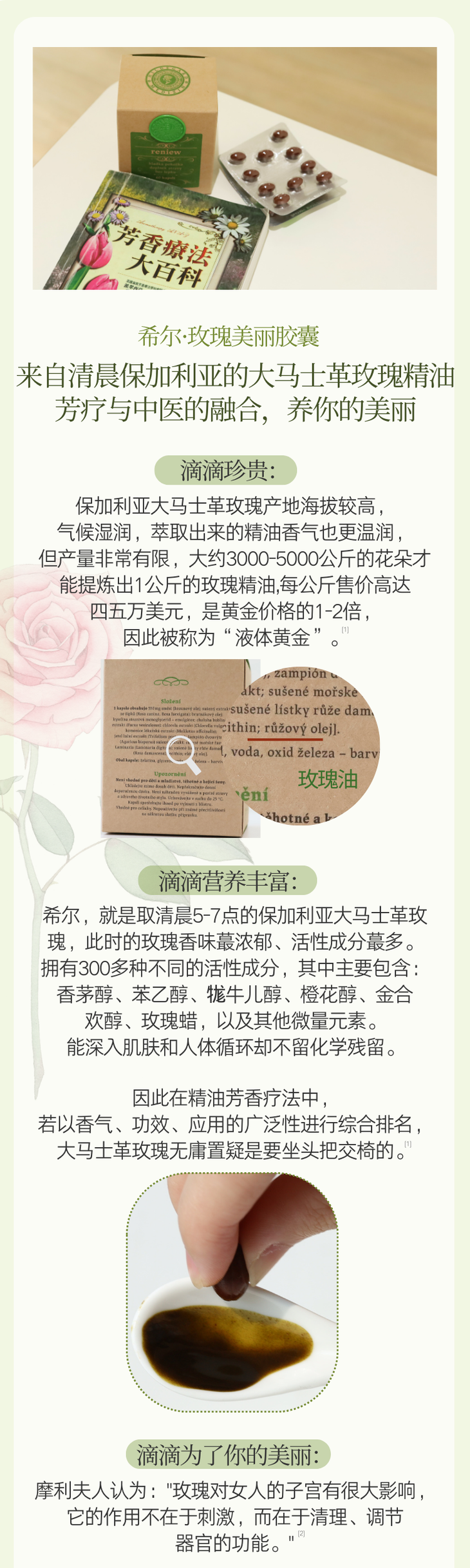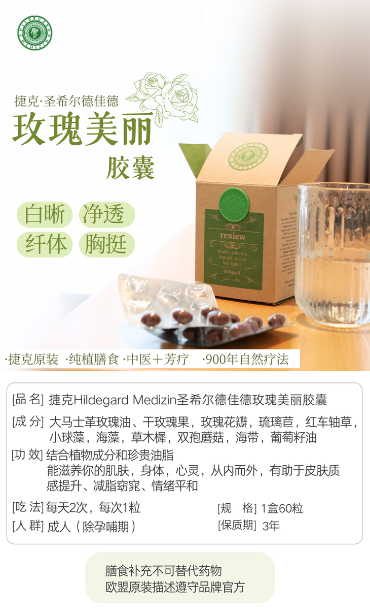 新版排毒晶球!捷克Hildegard Medizin圣希尔德佳德玫瑰美丽胶囊精油丸60粒 王牌琉璃苣油+大马士革玫瑰精油