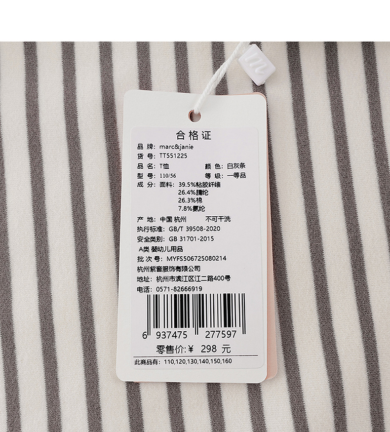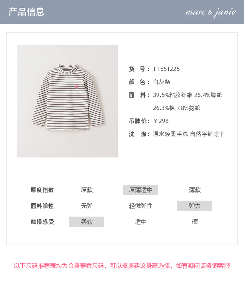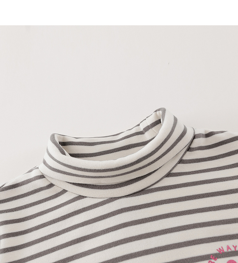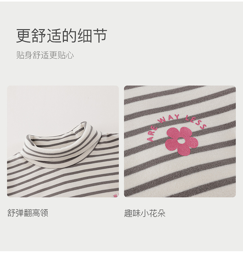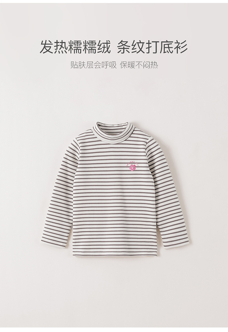 【科技发热】马克珍妮女童绒绒保暖条纹高领T恤秋冬新款551225