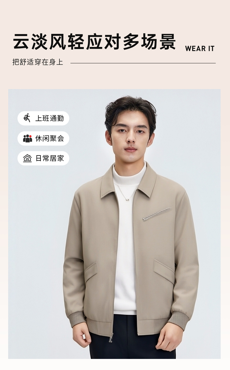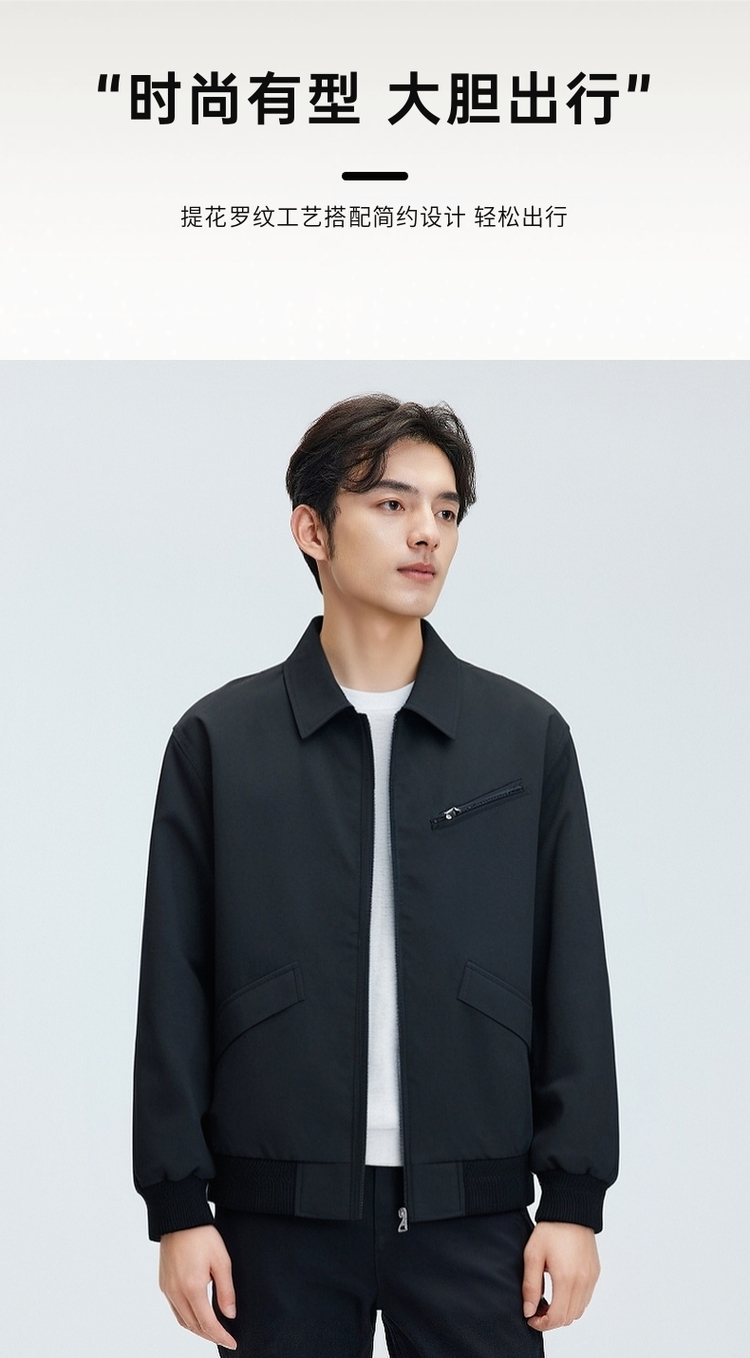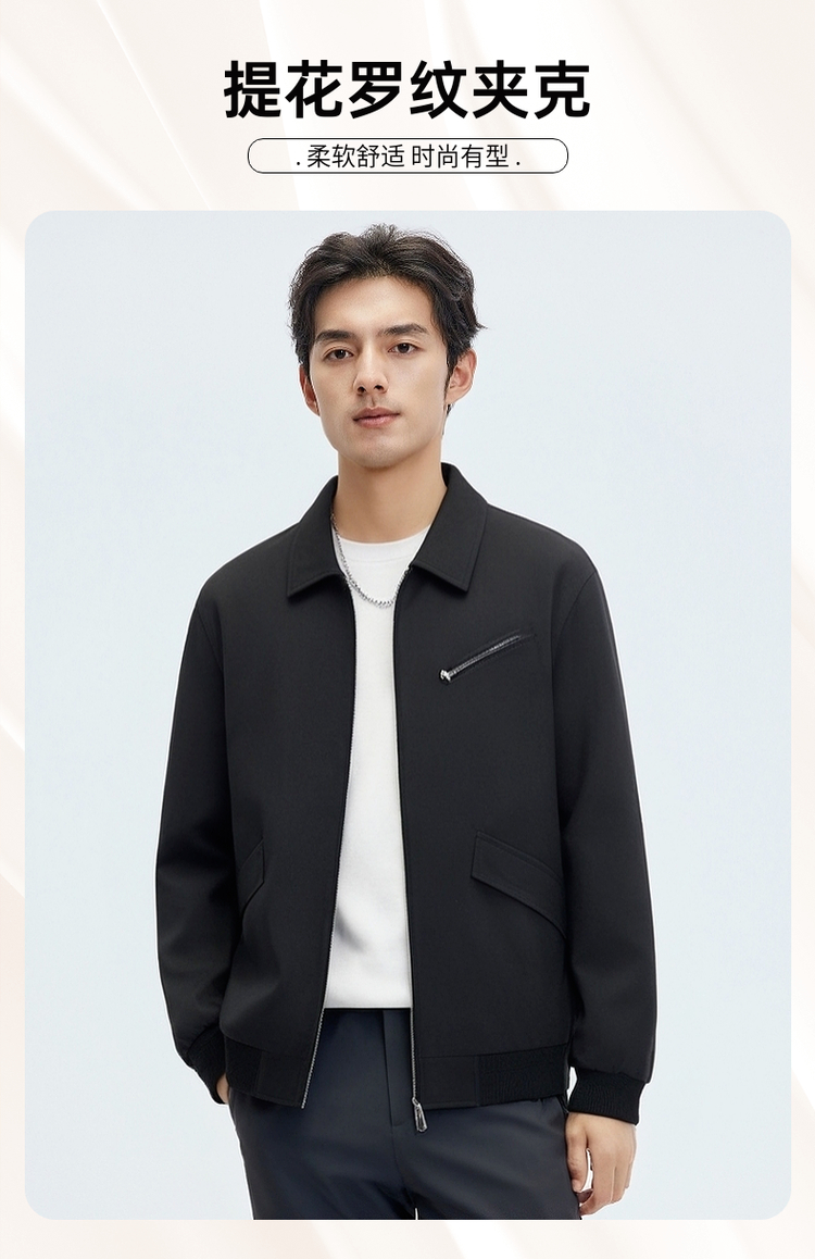 圣得西高级感提花罗纹夹克青年男2025春秋新款时尚工装飞行外套