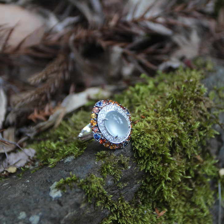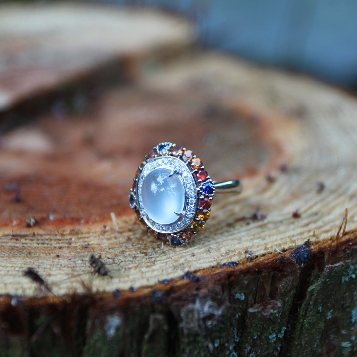 高冰白蛋翡翠多彩戒指【定制】