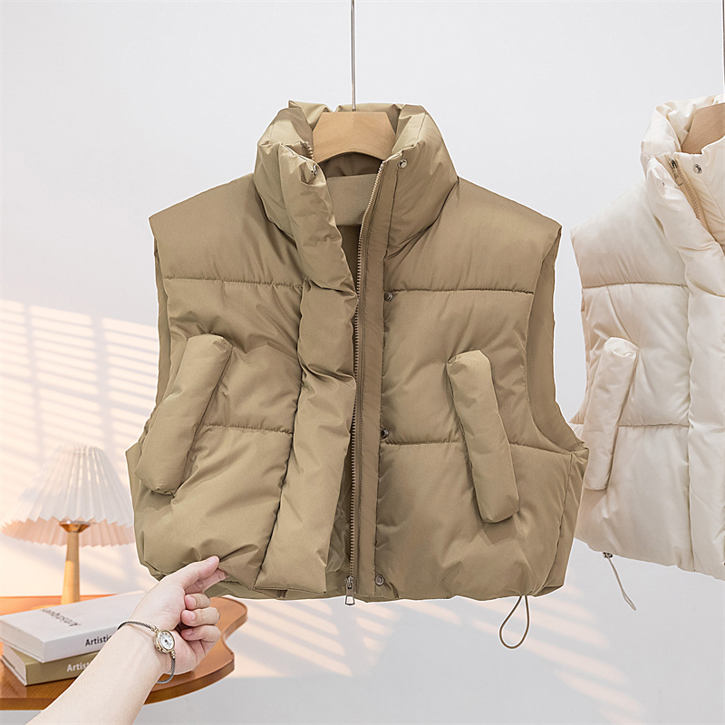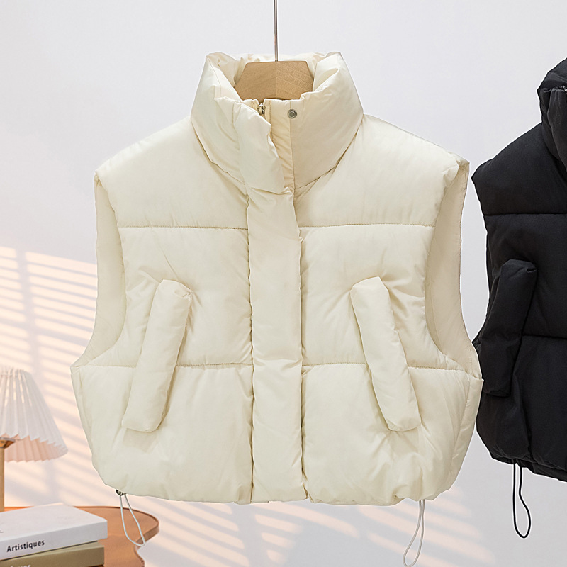 棉马甲女秋冬新款立领加厚宽松短款小香风无袖棉服背心外套