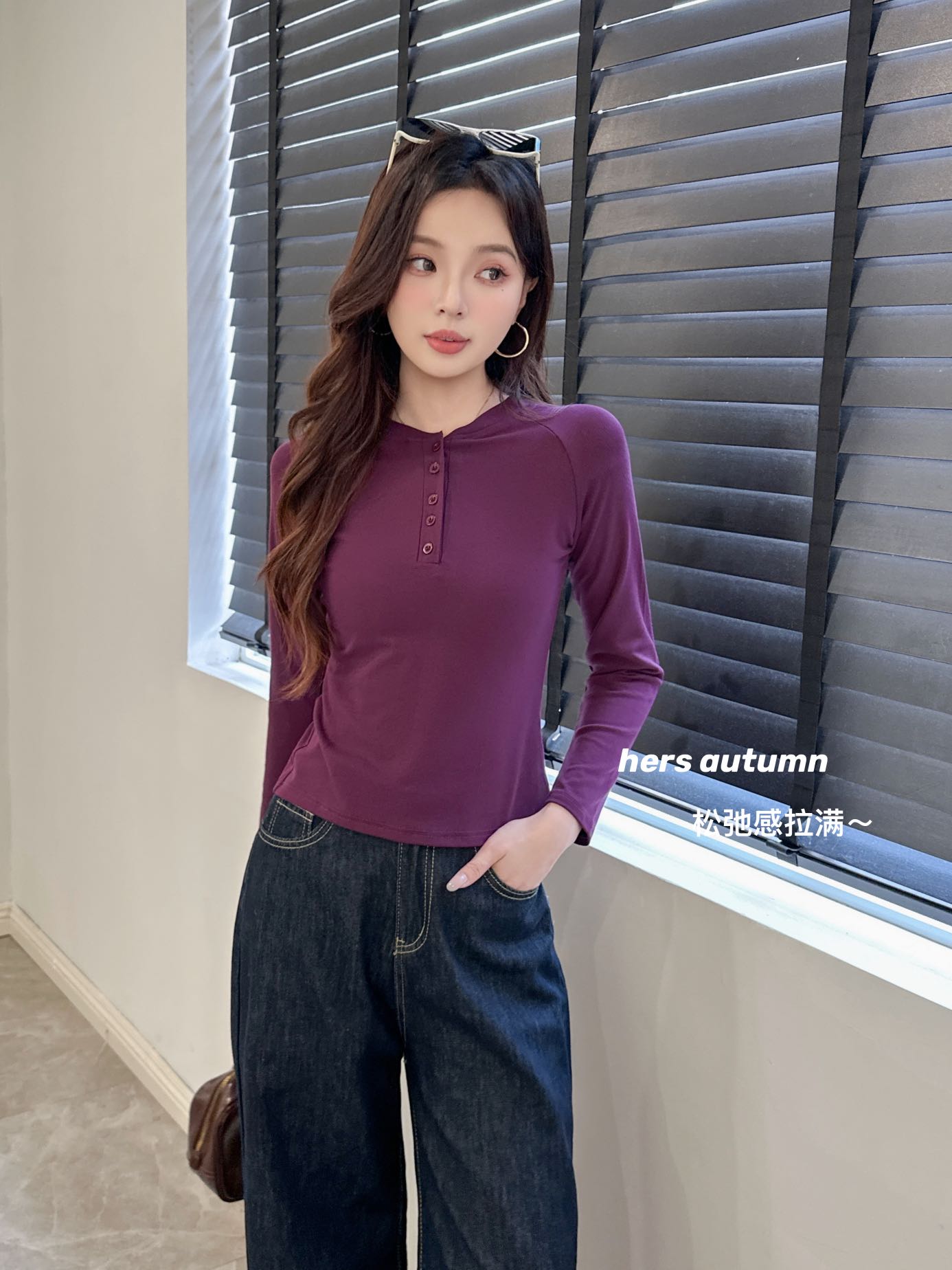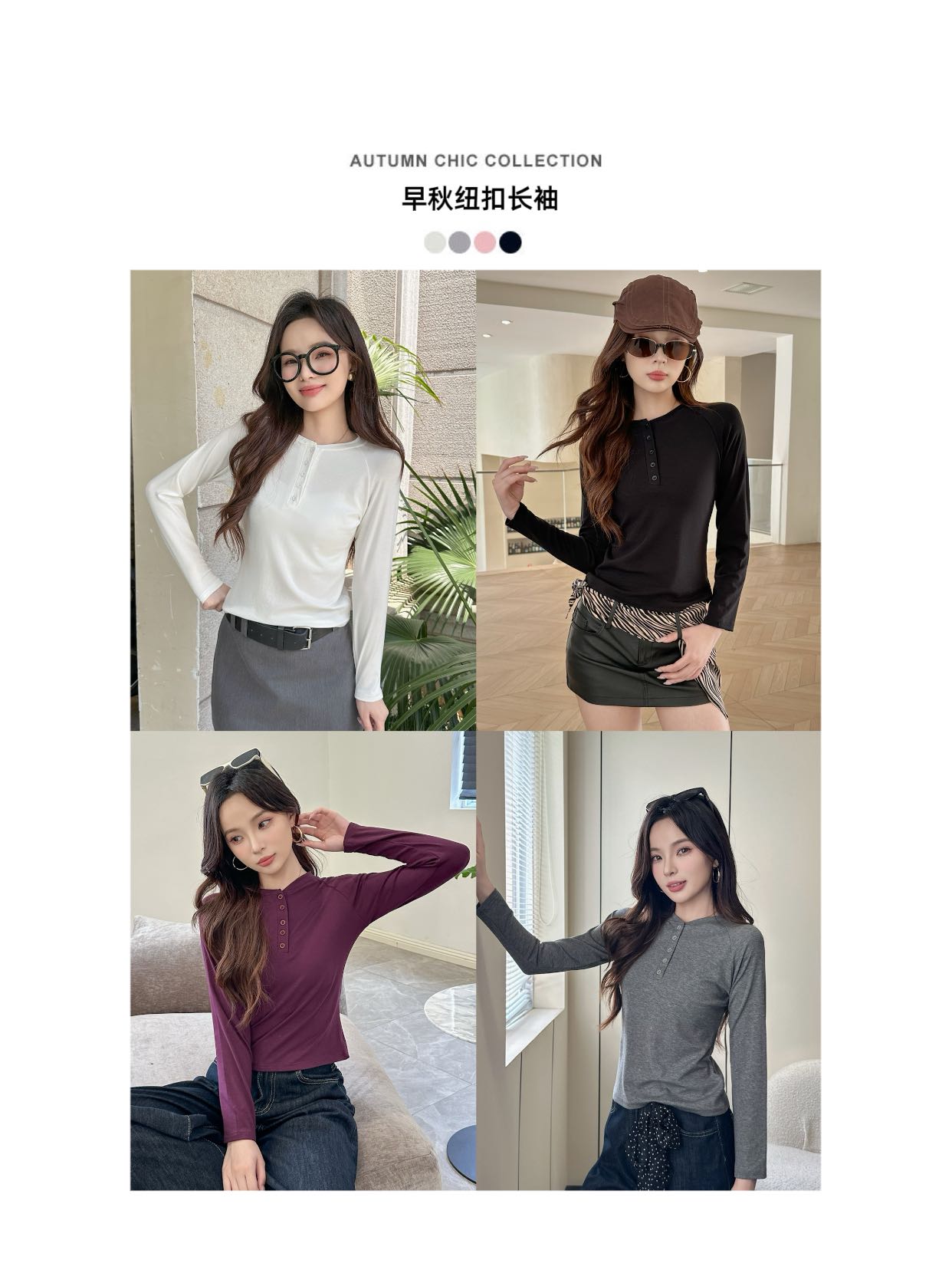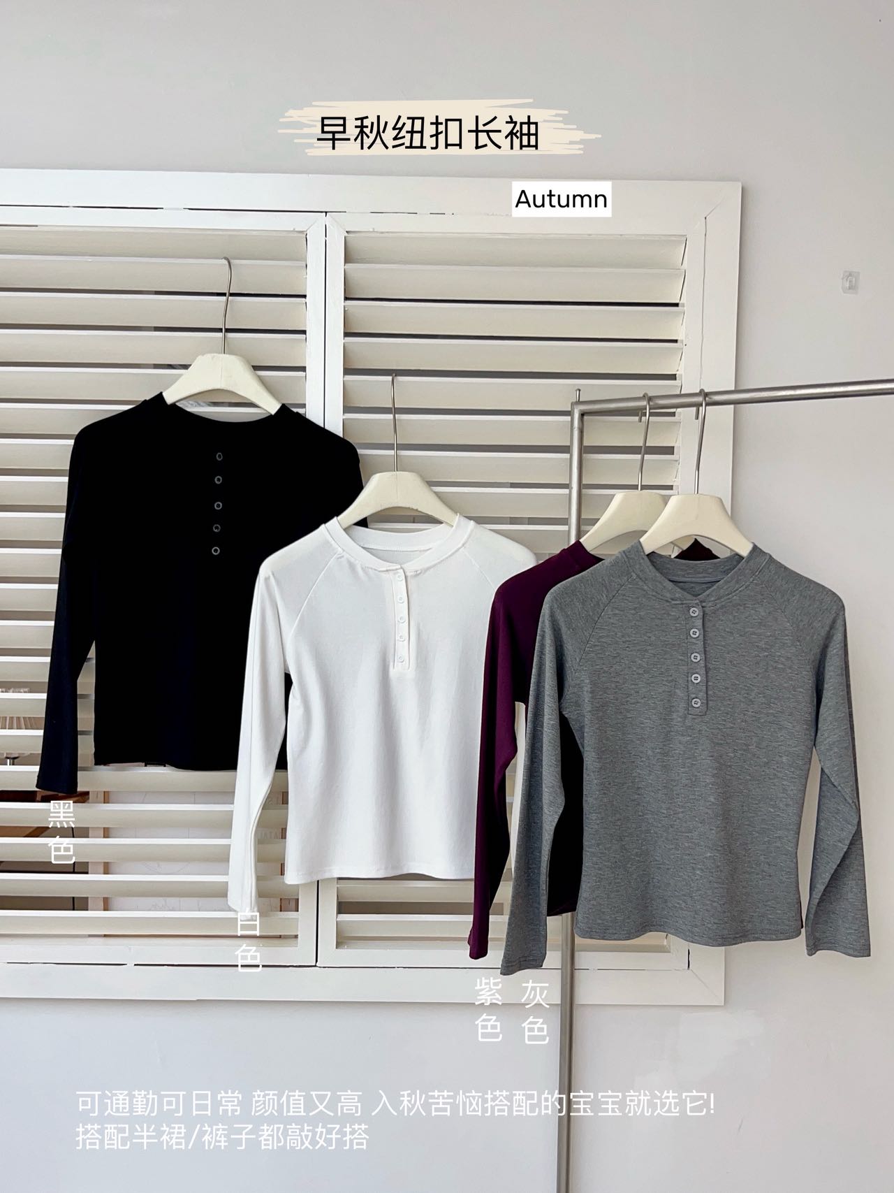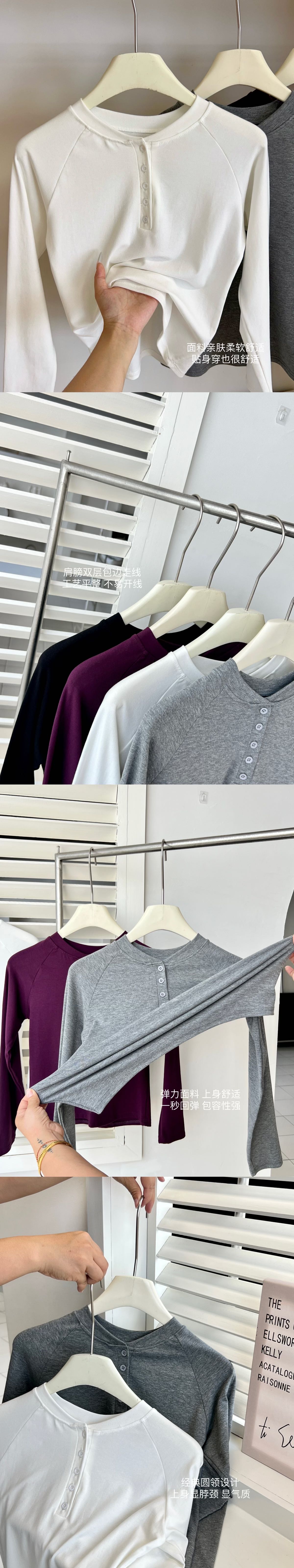 【YW】无忧购韩系ins休闲纽扣百搭修身长袖打底衫8828(截单后3-5天发货)