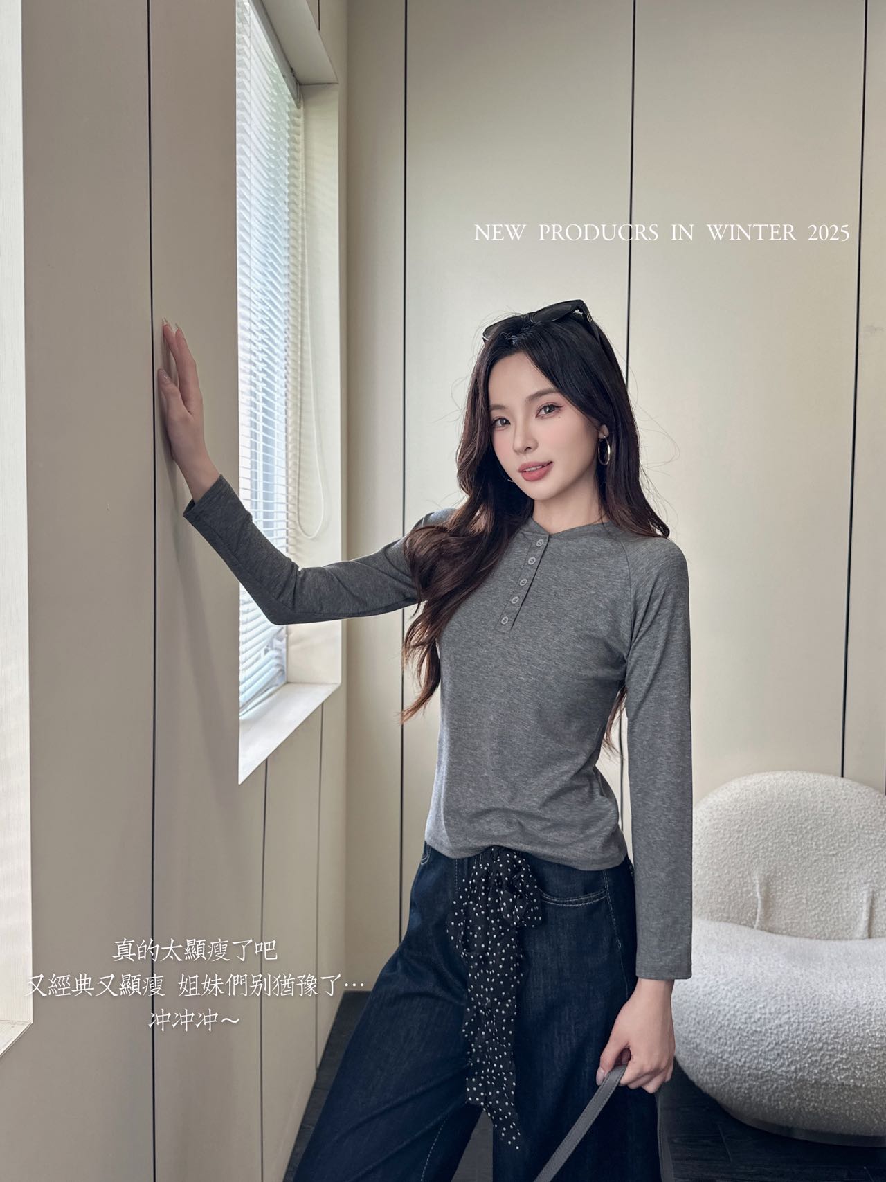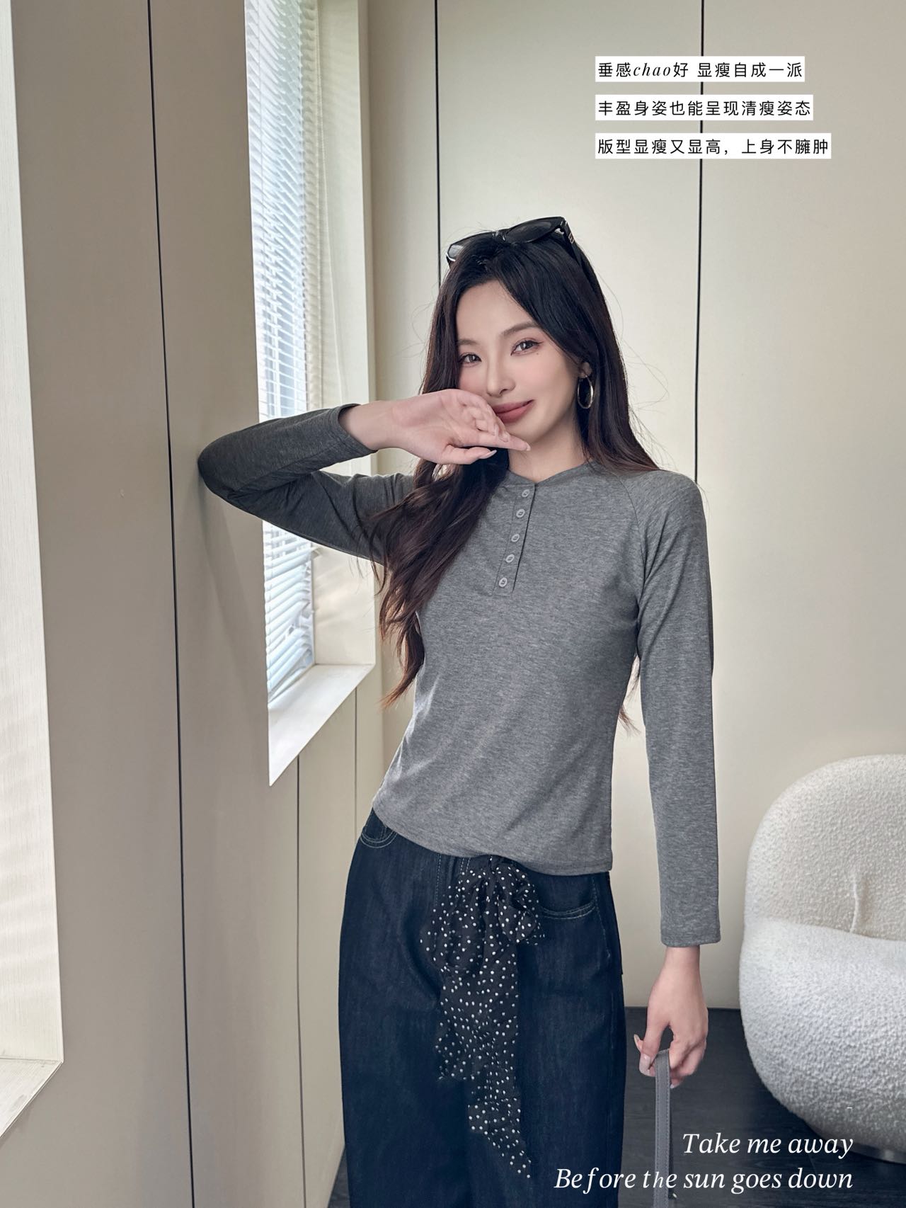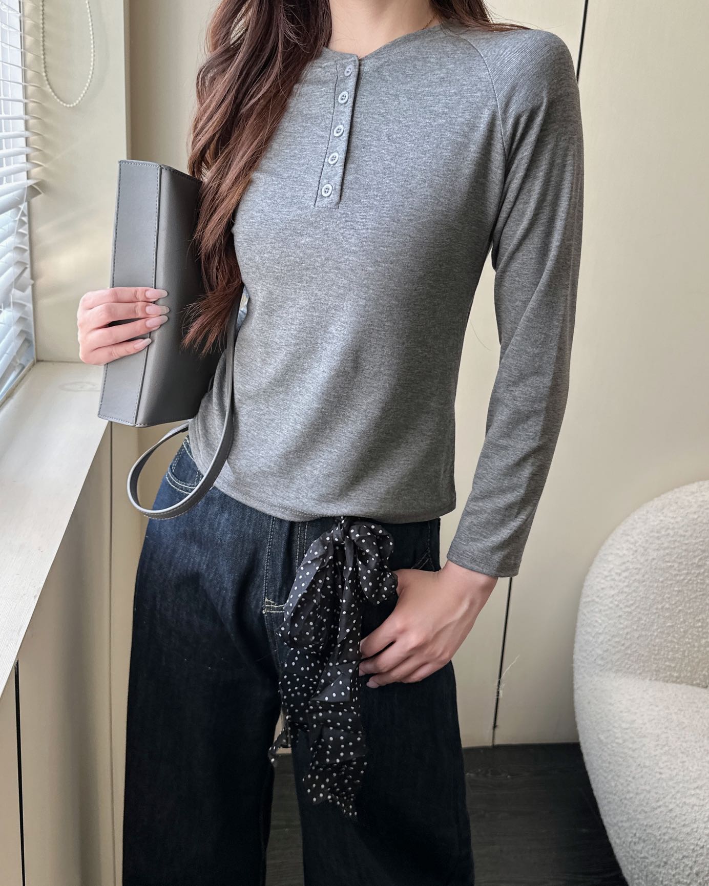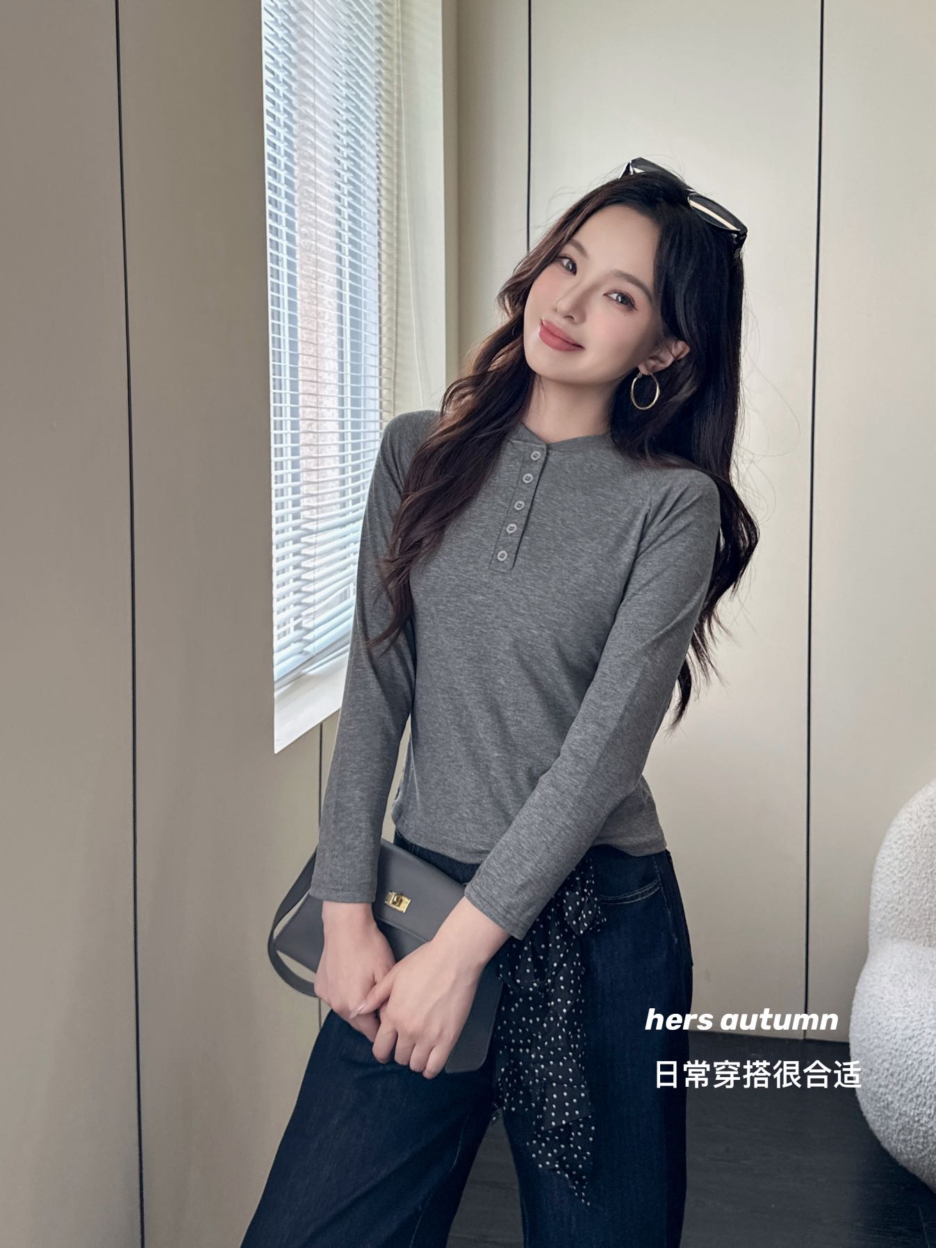 【YW】无忧购韩系ins休闲纽扣百搭修身长袖打底衫8828(截单后3-5天发货)