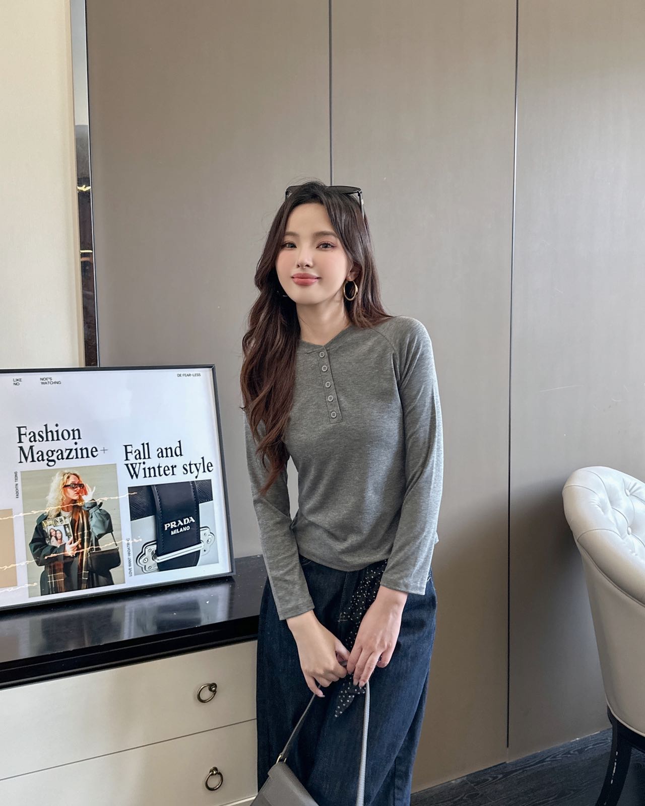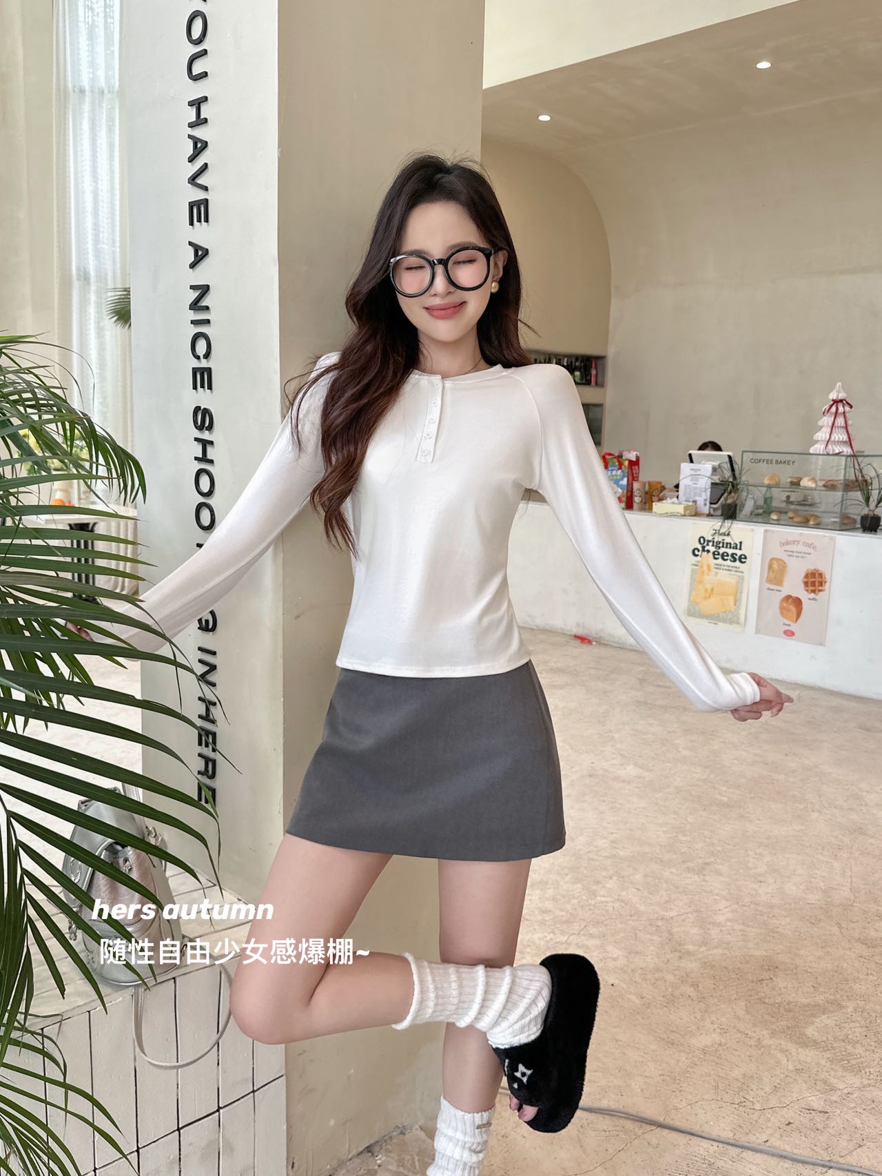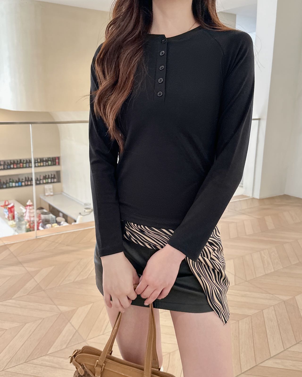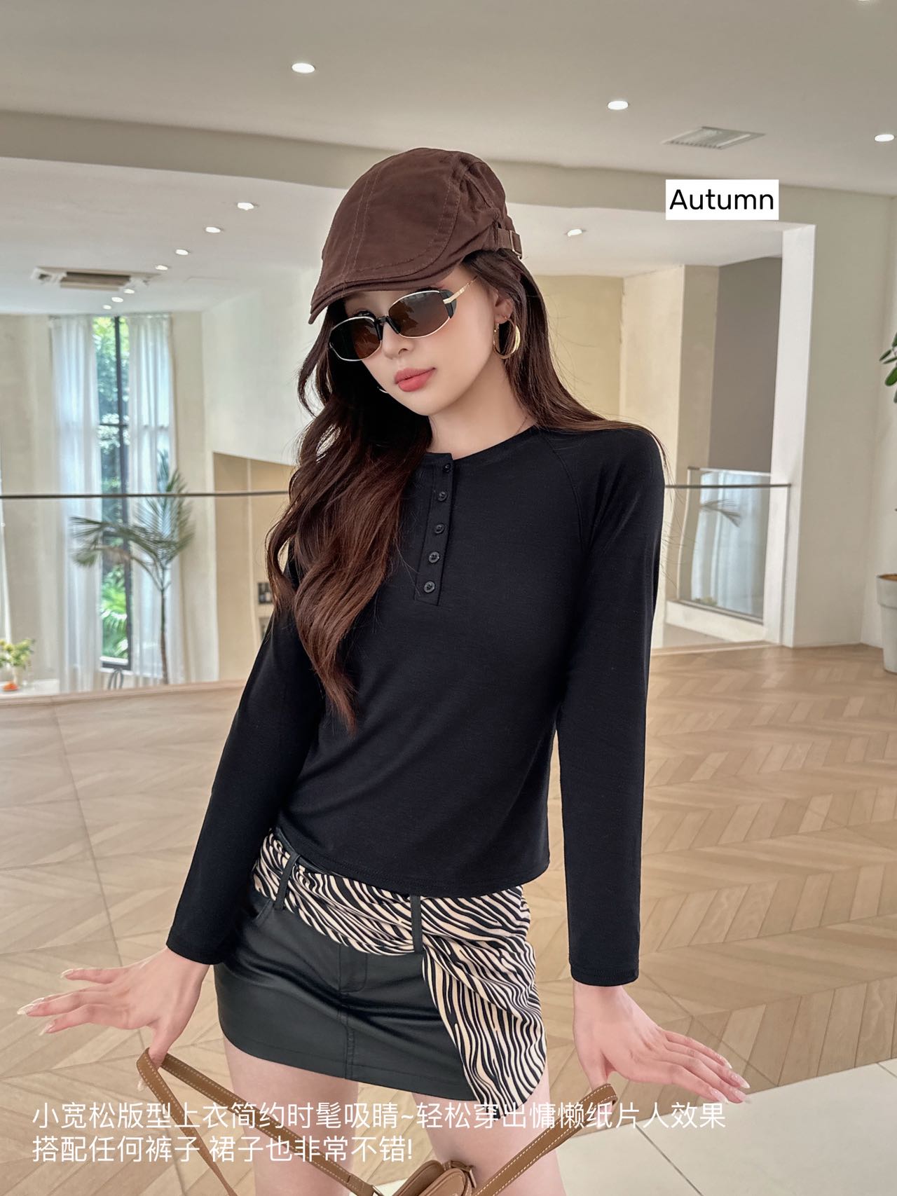 【YW】无忧购韩系ins休闲纽扣百搭修身长袖打底衫8828(截单后3-5天发货)