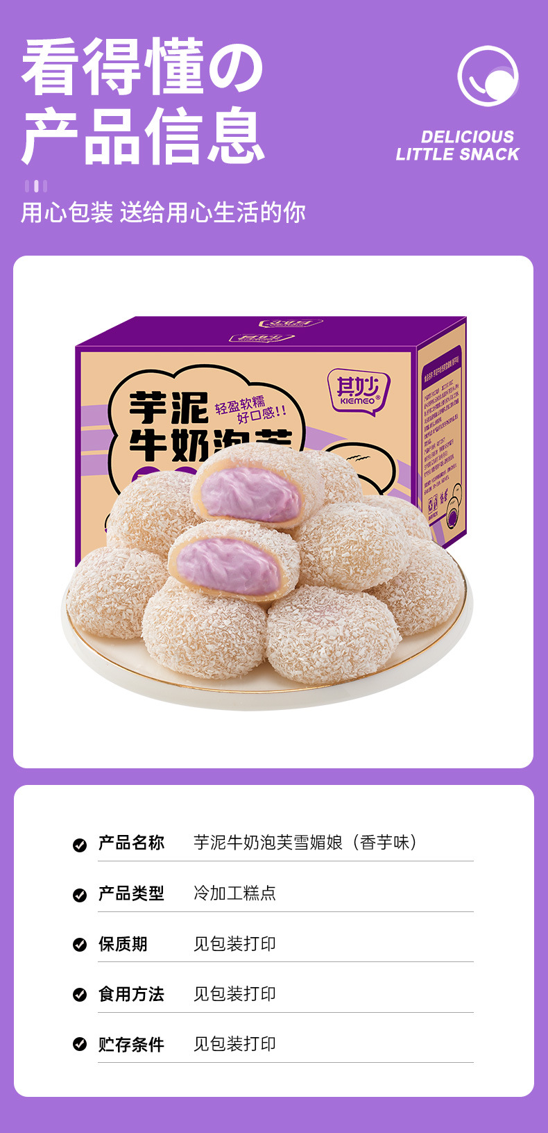 【买一送一!芋泥牛奶泡芙雪媚娘】椰丝满满,松软绵密,糯叽叽超好吃!爆浆泡芙网红休闲传统糕点零食