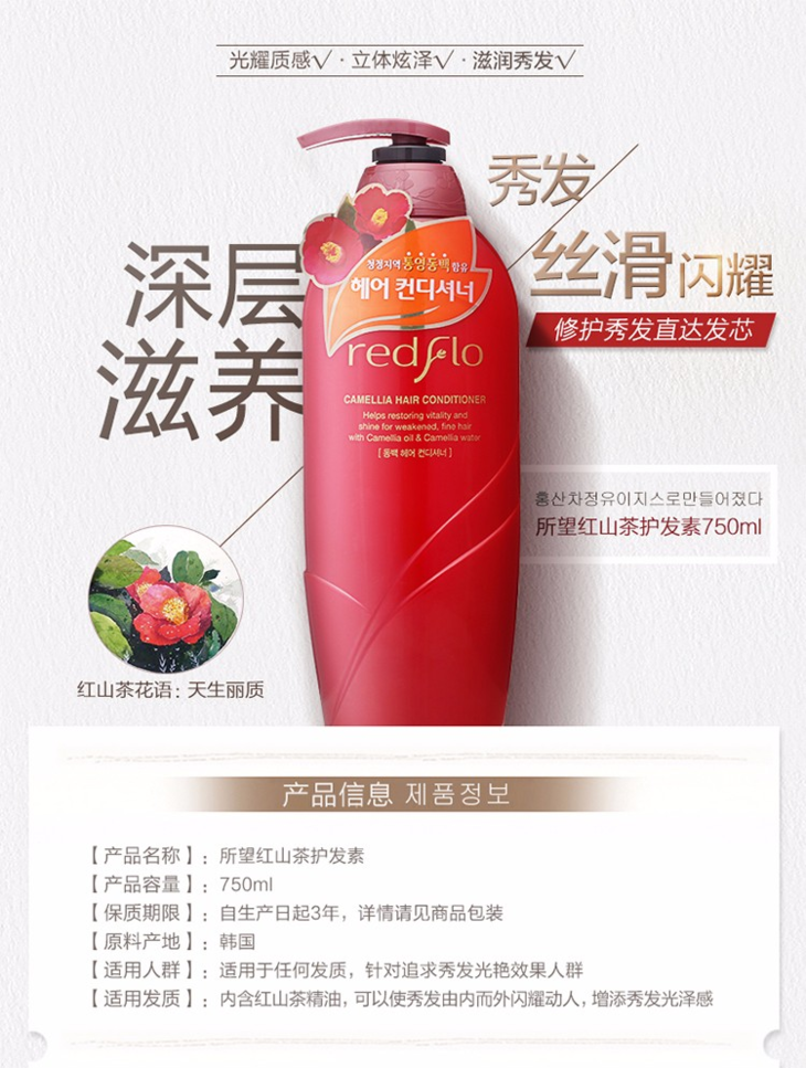 韩国所望SOMANG 红花牌山茶籽护发素750ml