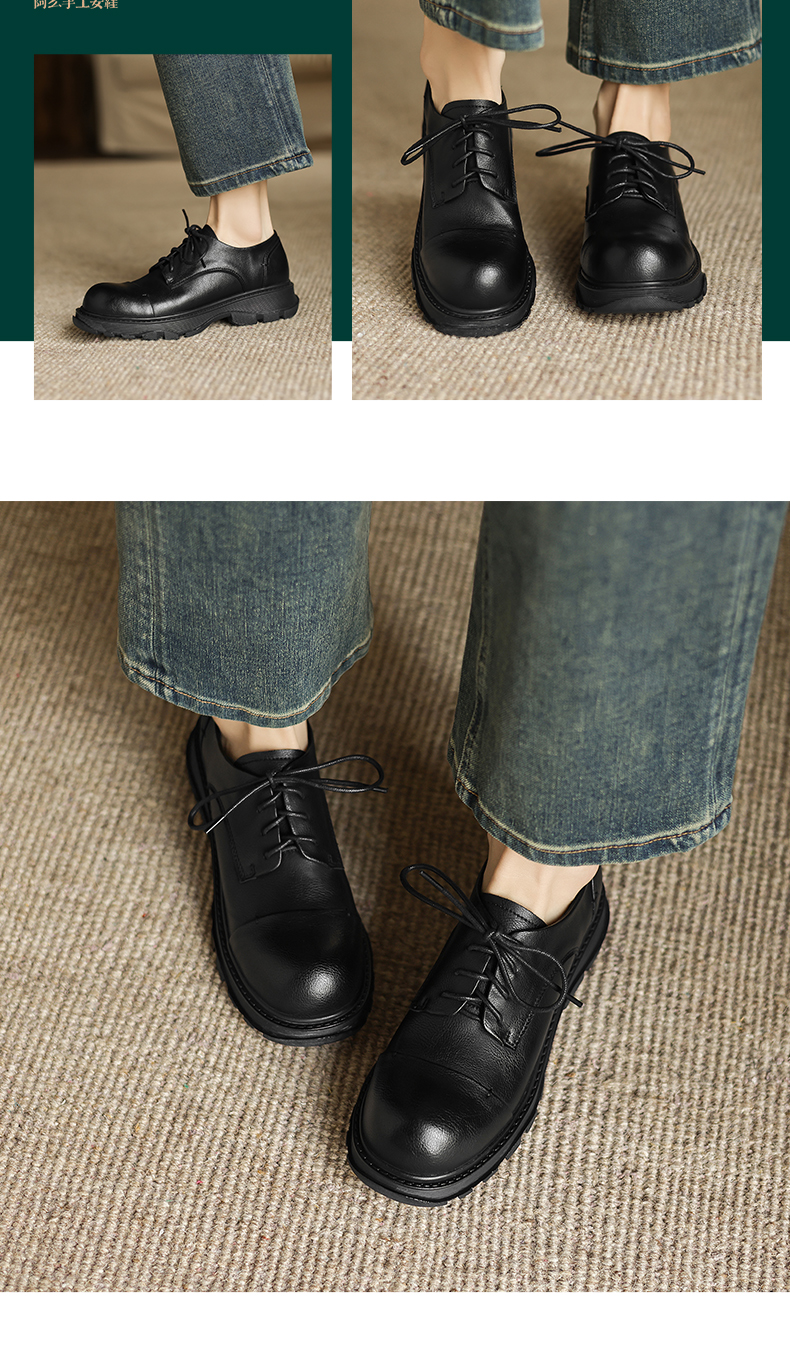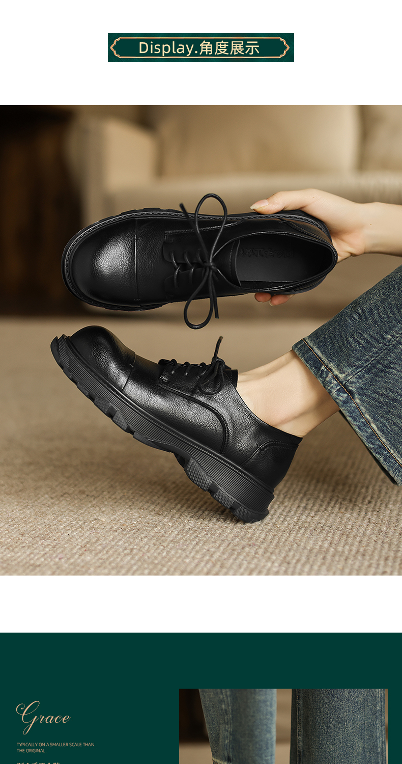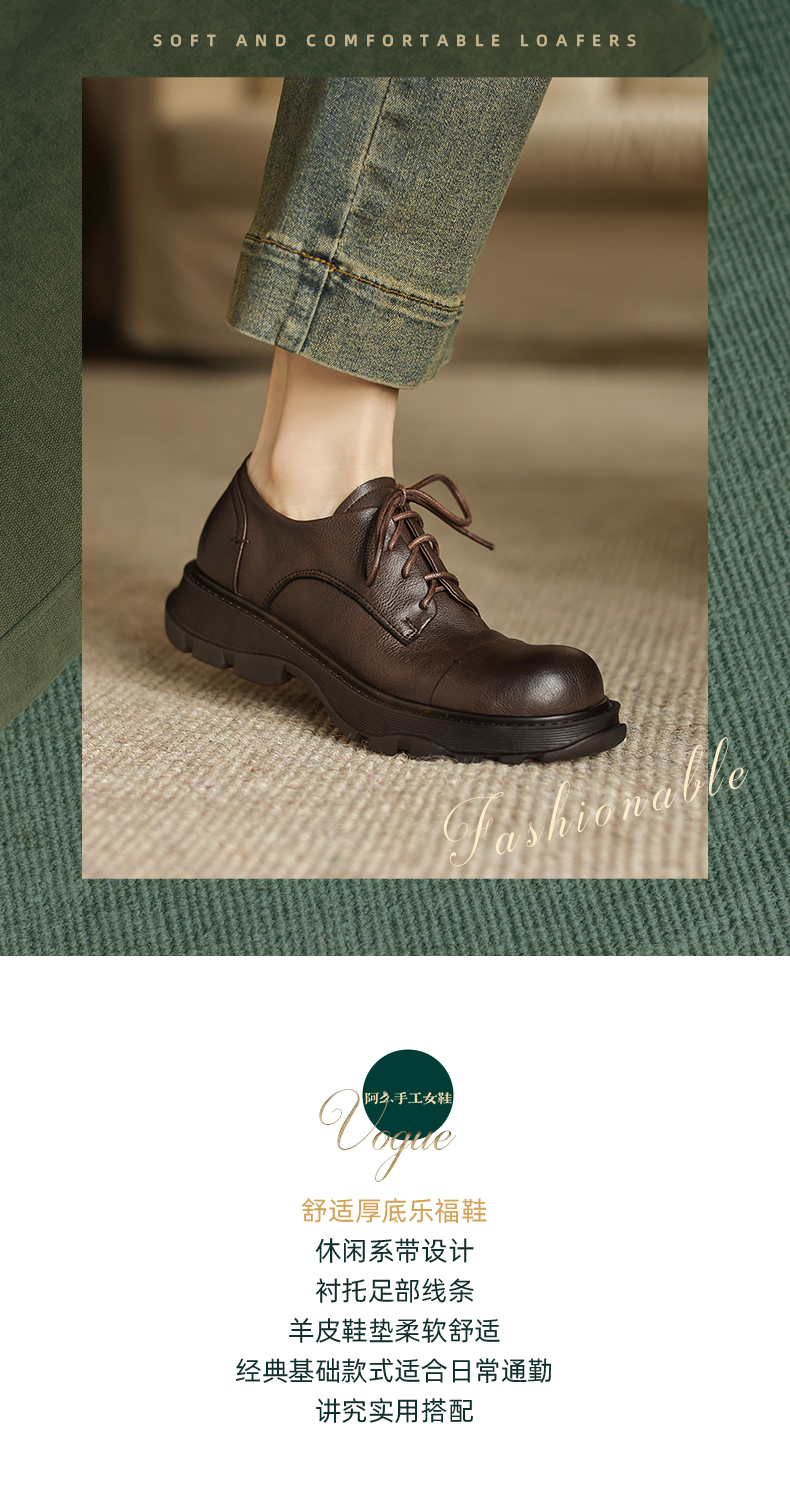 阿么手工女鞋软牛皮系带小皮鞋女新款经典英伦风百搭通勤单鞋3CM