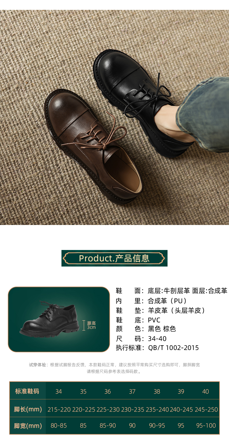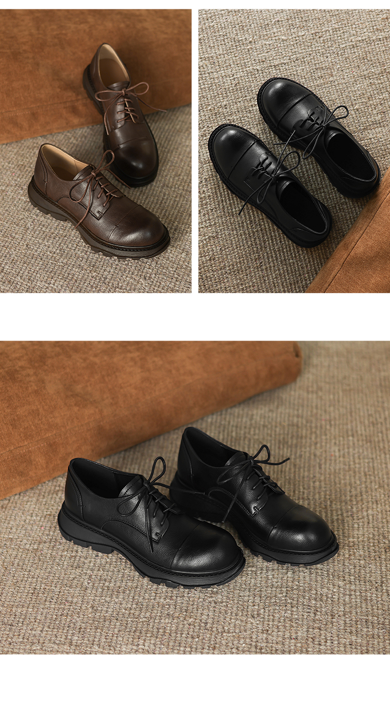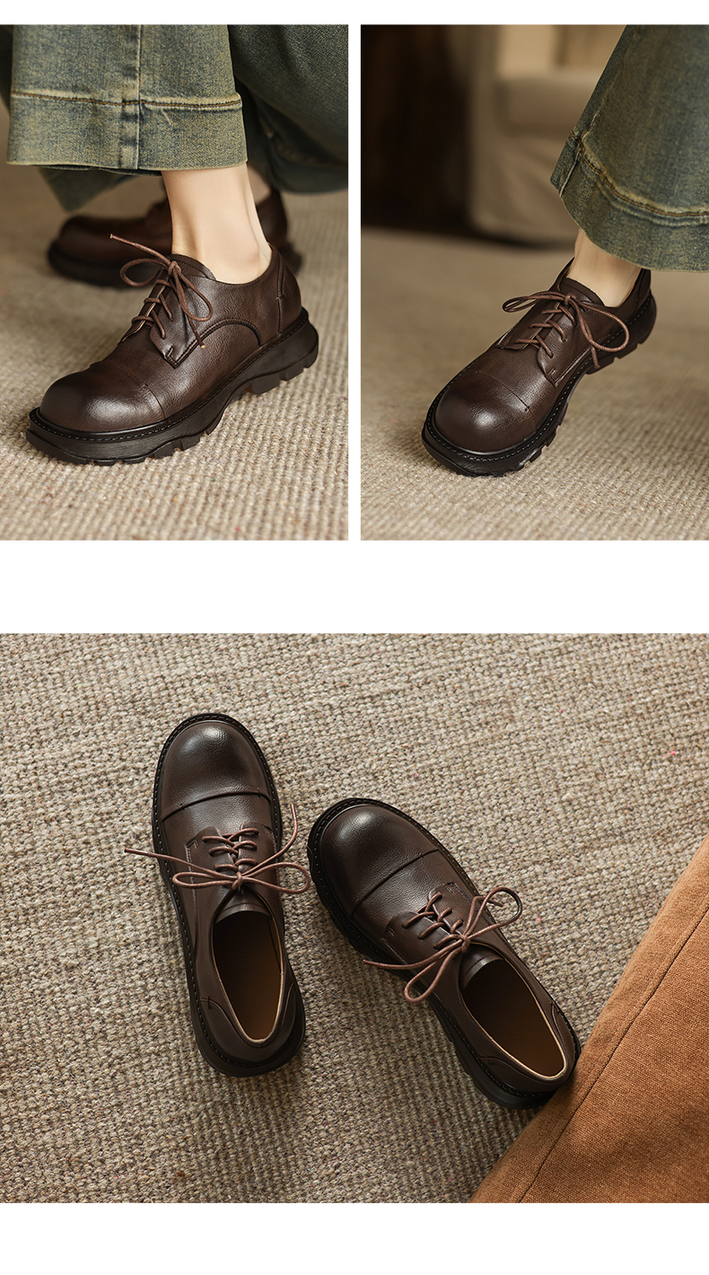 阿么手工女鞋软牛皮系带小皮鞋女新款经典英伦风百搭通勤单鞋3CM