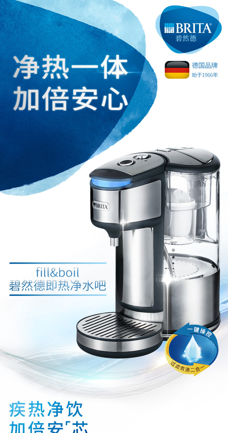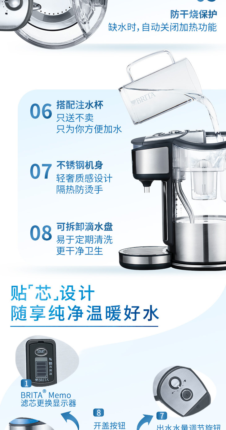 【一般贸易】德国 BRITA碧然德家用超滤智能电热水壶1.8L 1机1芯