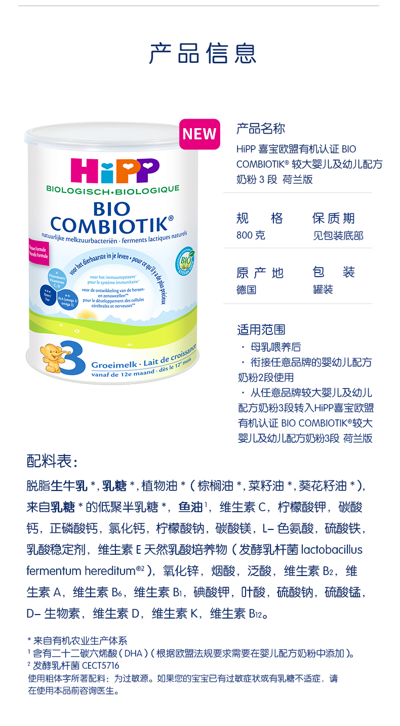 HNMG 荷兰版 铁罐德国喜宝益生菌奶粉3段 900g