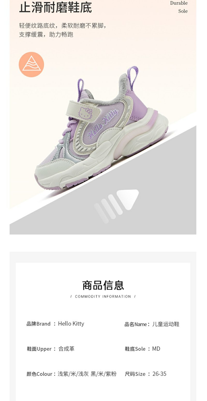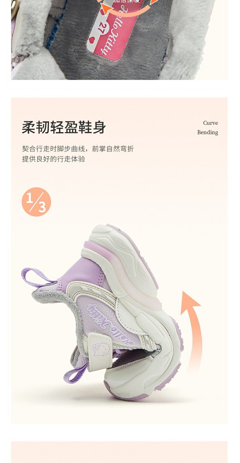 HelloKitty童鞋女童运动鞋冬季新款儿童加绒棉鞋中大童女孩保暖鞋