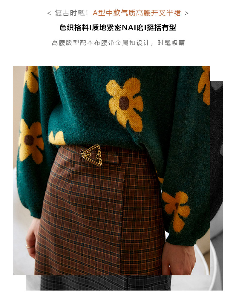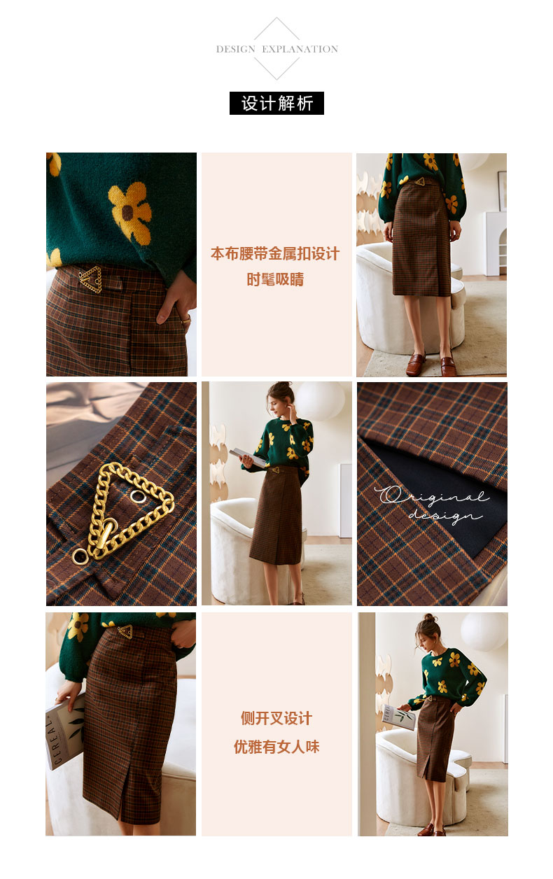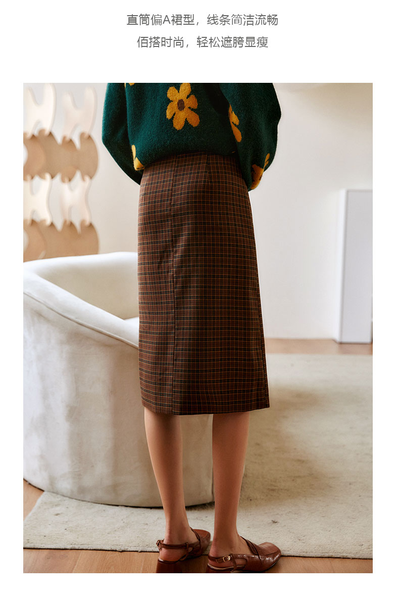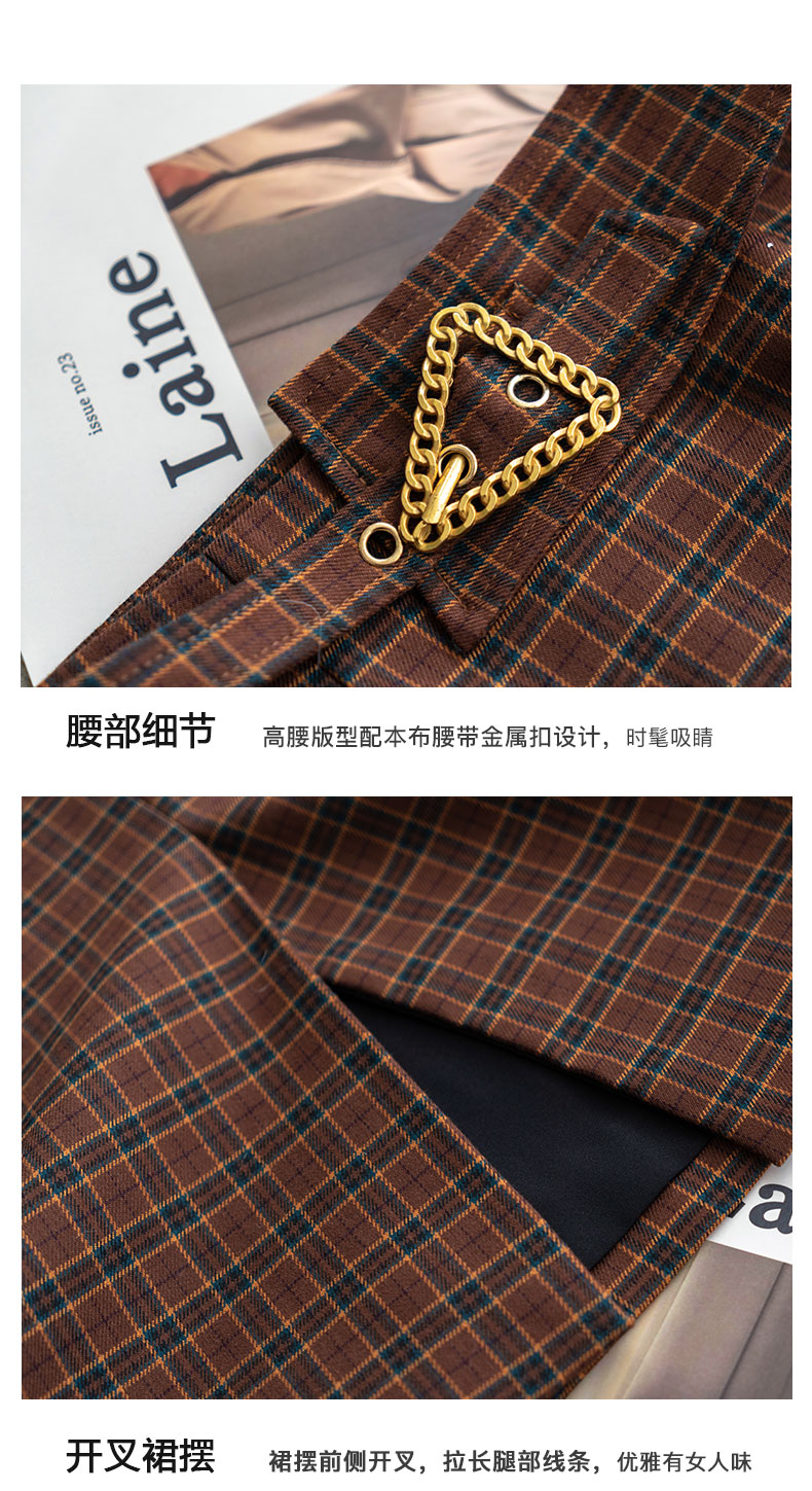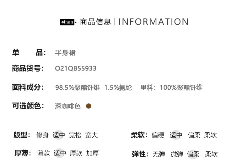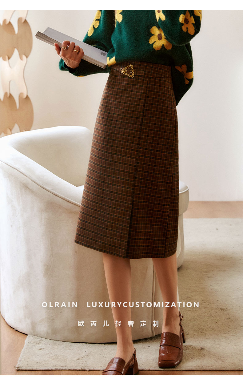 欧芮儿咖色半身裙2021春秋新款高腰显瘦气质复古中长款开叉a字裙