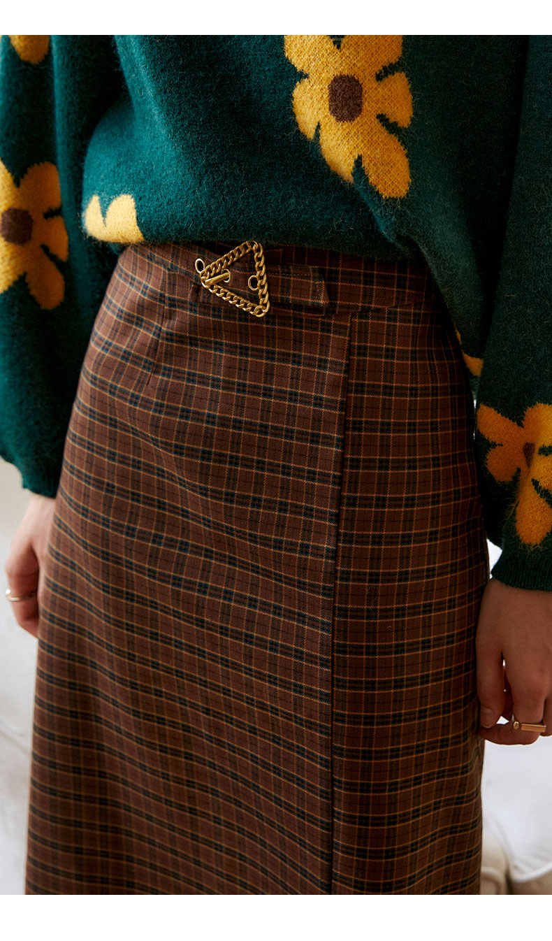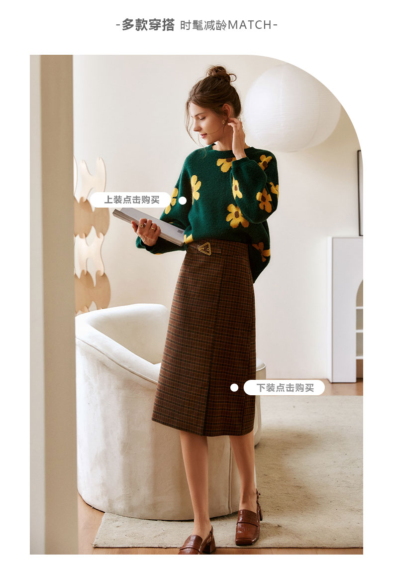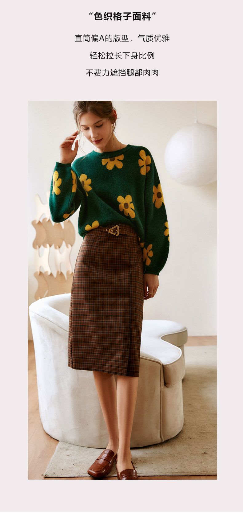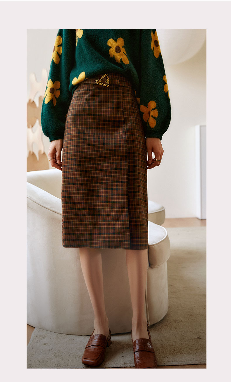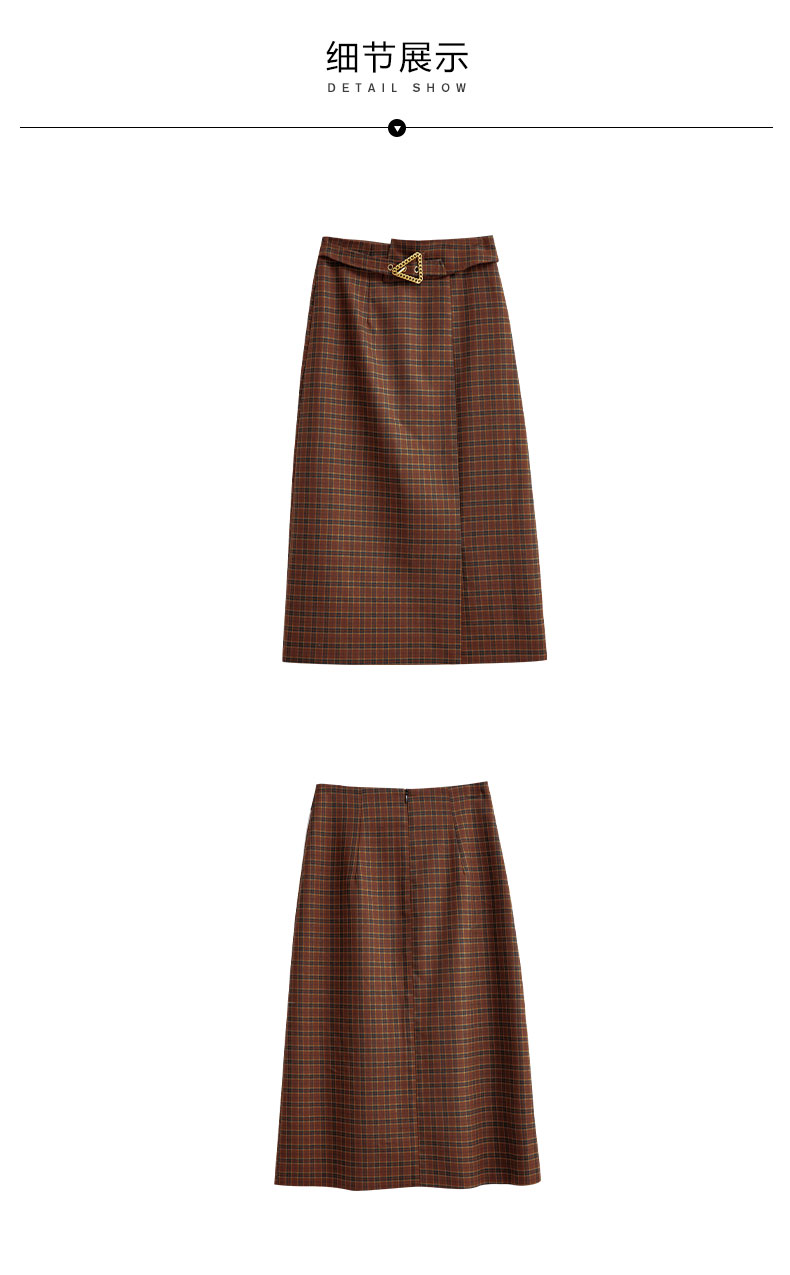 欧芮儿咖色半身裙2021春秋新款高腰显瘦气质复古中长款开叉a字裙