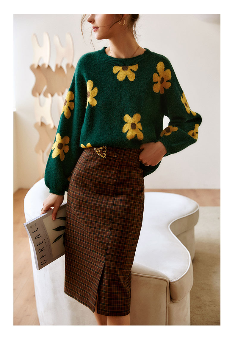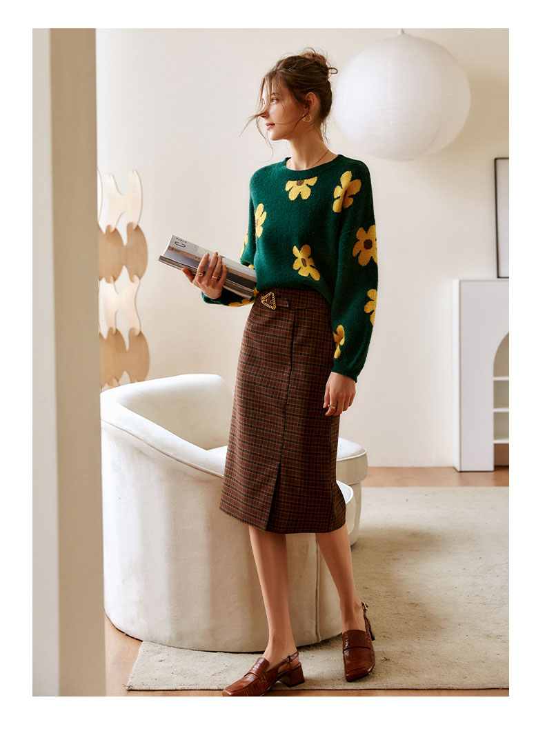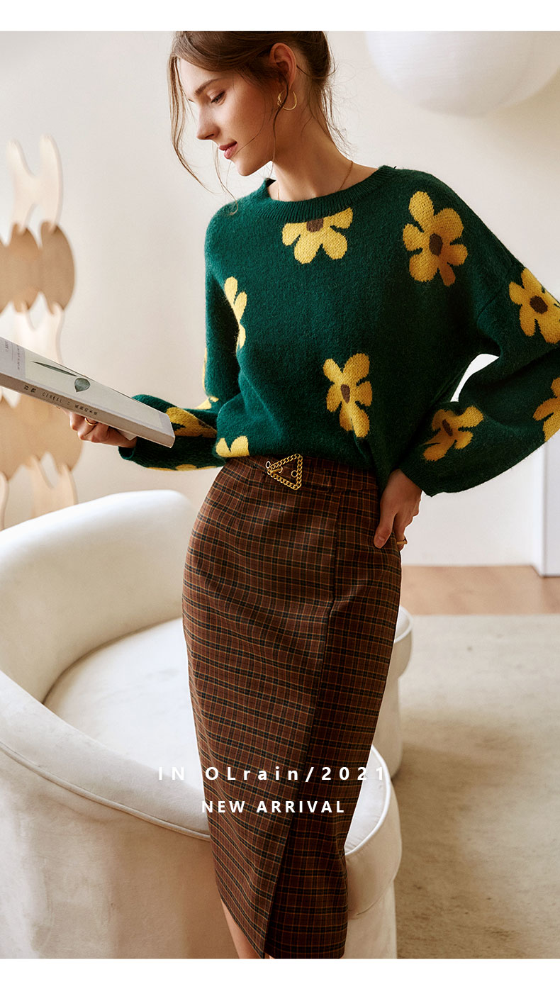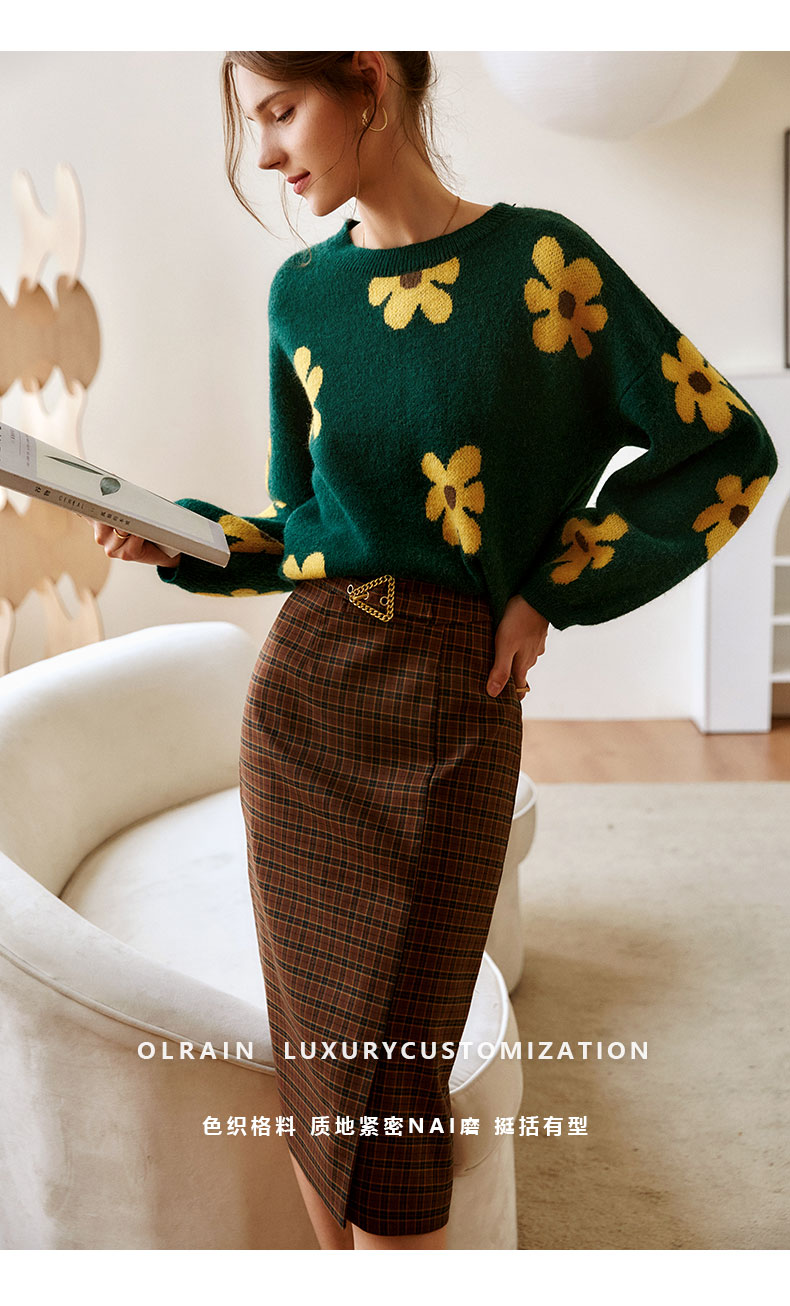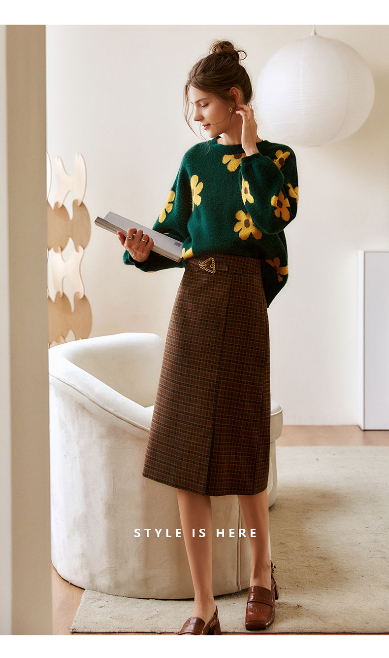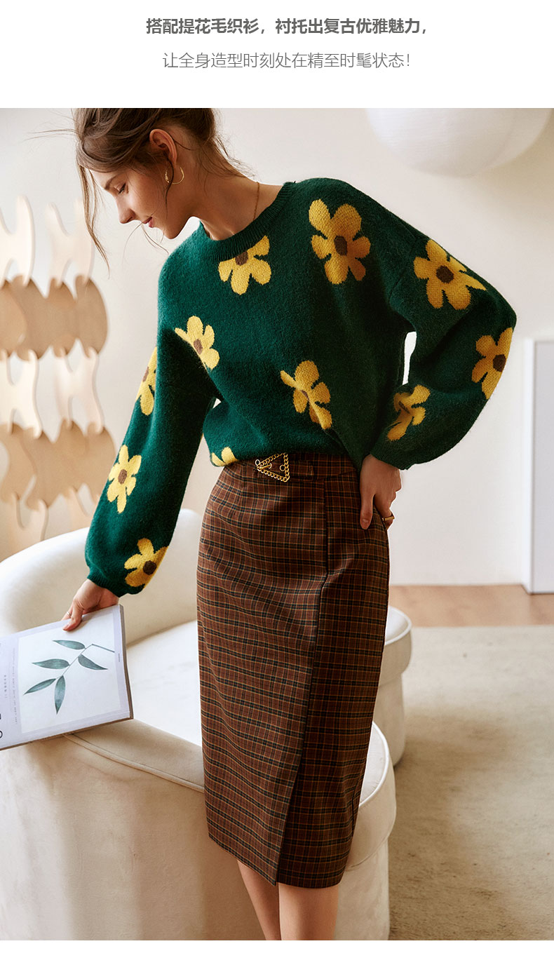 欧芮儿咖色半身裙2021春秋新款高腰显瘦气质复古中长款开叉a字裙