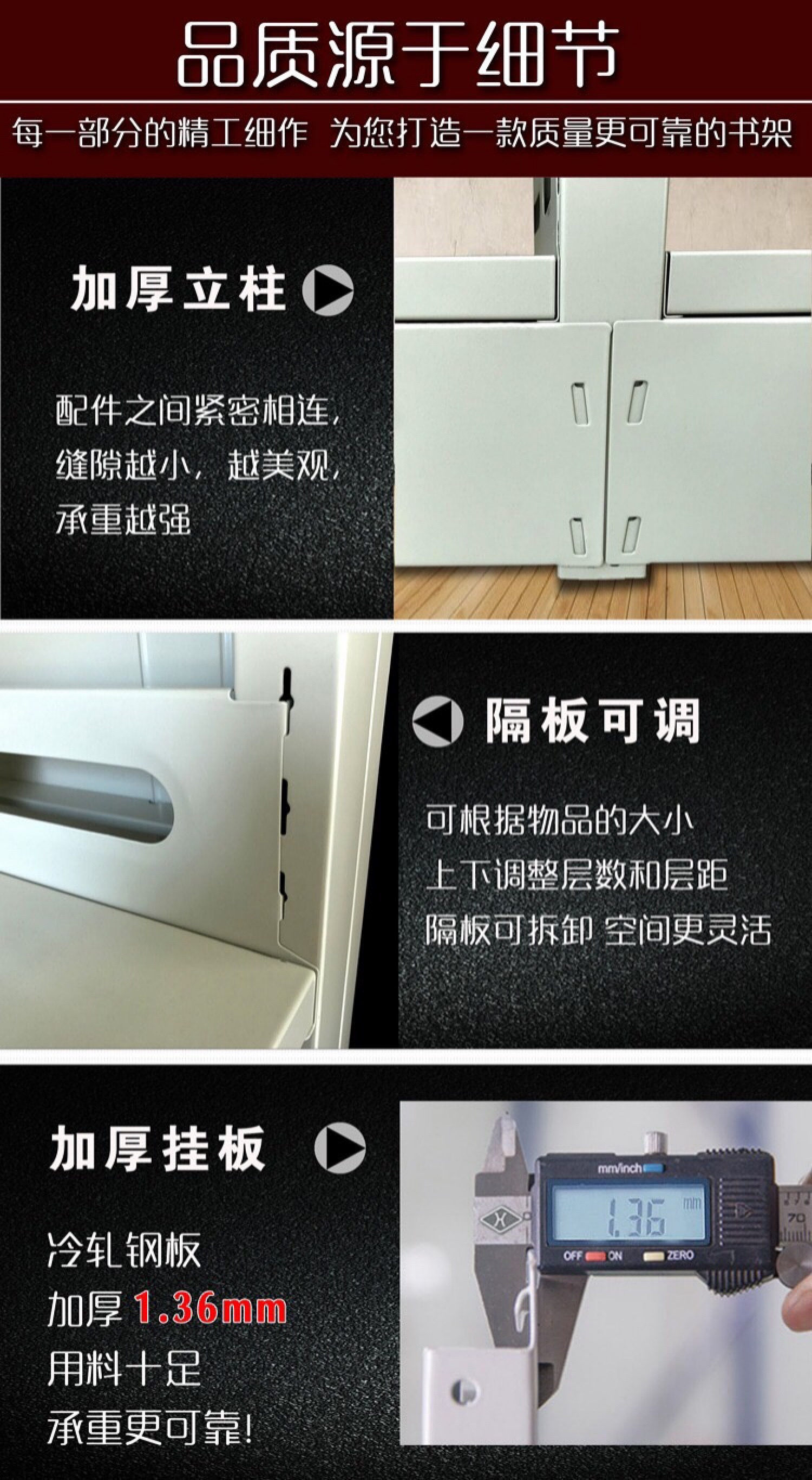 👏材质妥妥的安心! 全钢材质,承重力很强!看一下实测视频!就知道我们家的书架有多自信了! 0甲醛0异味, 装好就能用,给宝宝用,一百个放心!