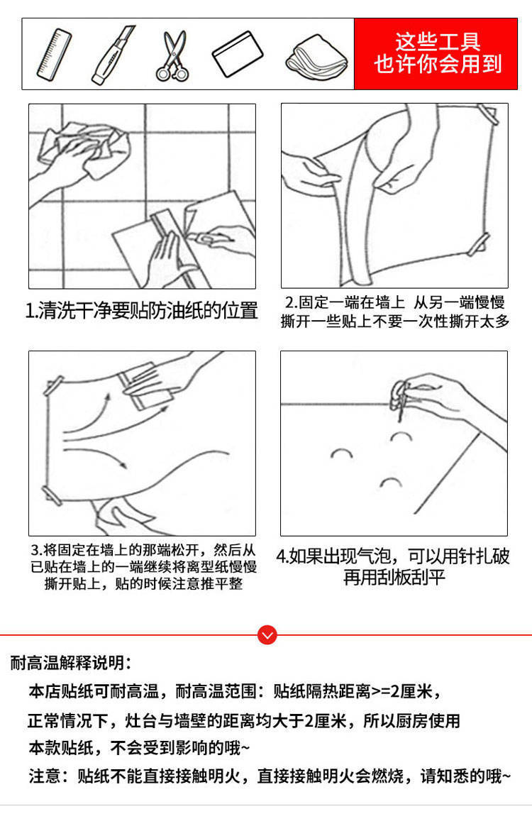 透明厨房防油污贴纸瓷砖墙纸自粘灶台贴纸厨房用品