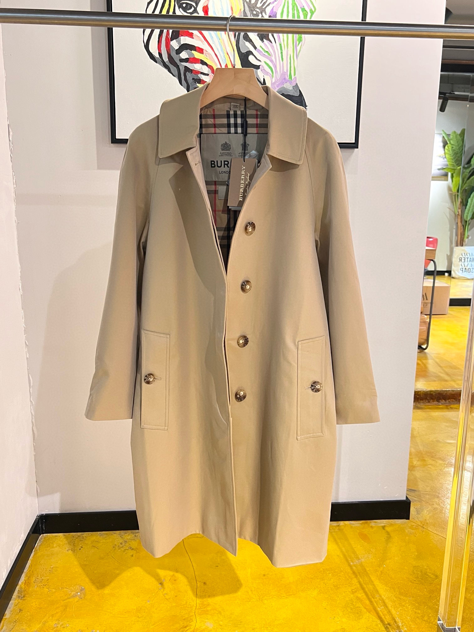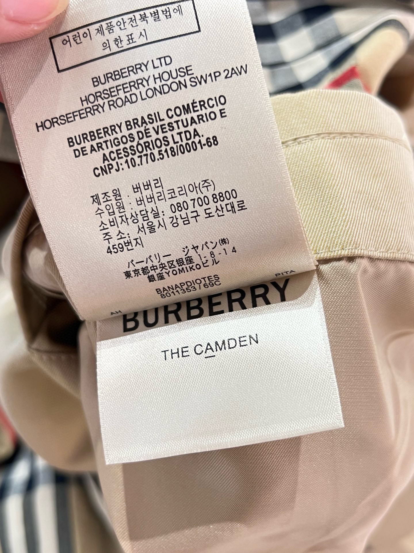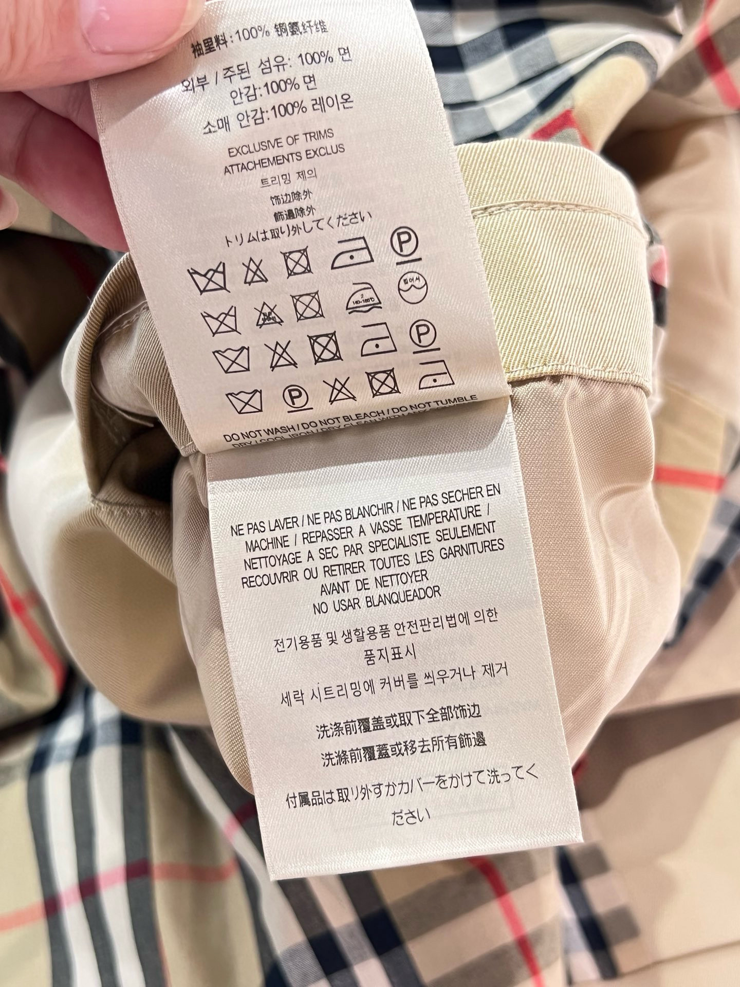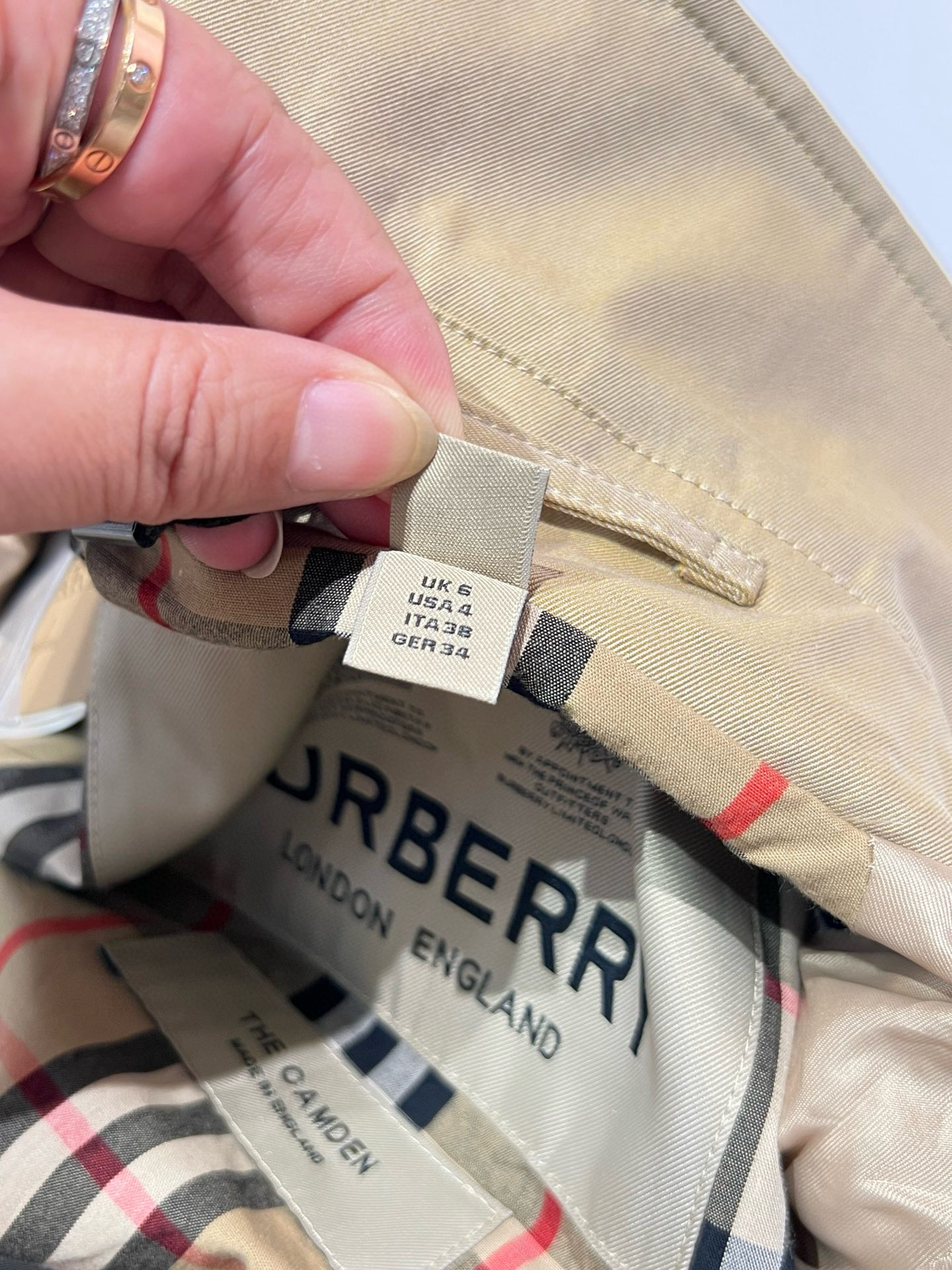 整个大身内里全部都是经典格纹内衬,这款风衣是两侧内口袋哈,口袋位置、后开叉结构位置,拼接合缝位置统统都是手工对纹,品相无敌。