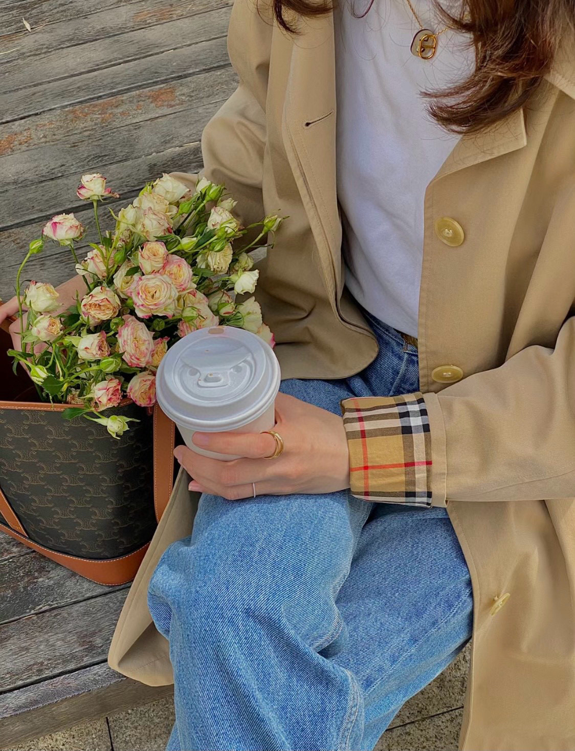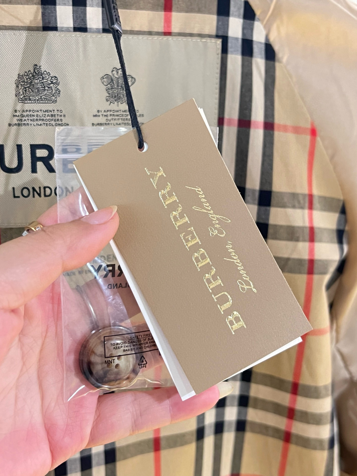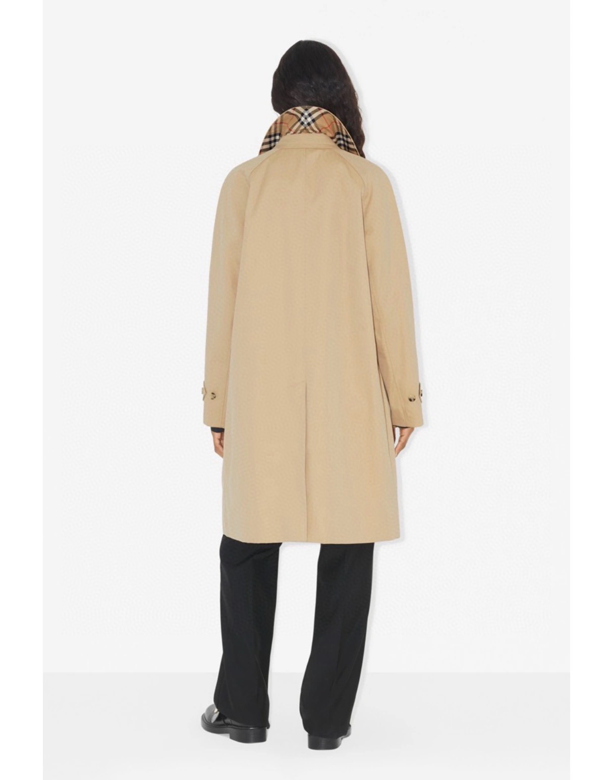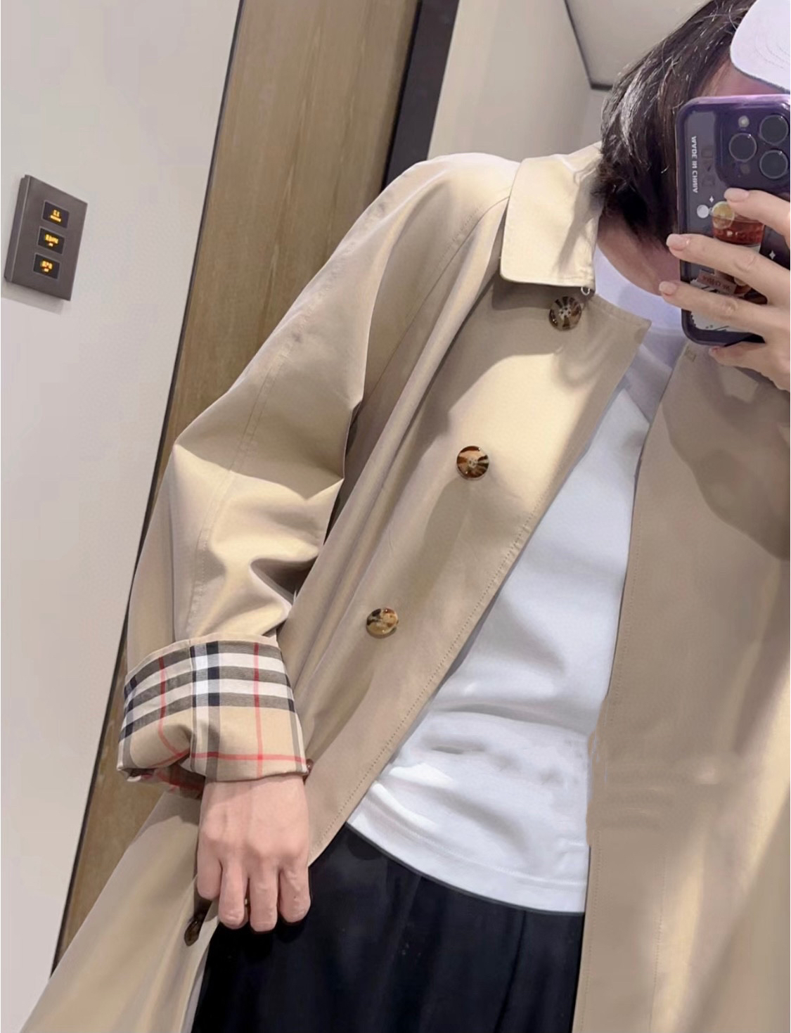 ➡️袖口有排扣哈,这款风衣是可以反过来袖口穿的,衣袖做了经典格纹拼接,翻过来穿更随意,更时髦。