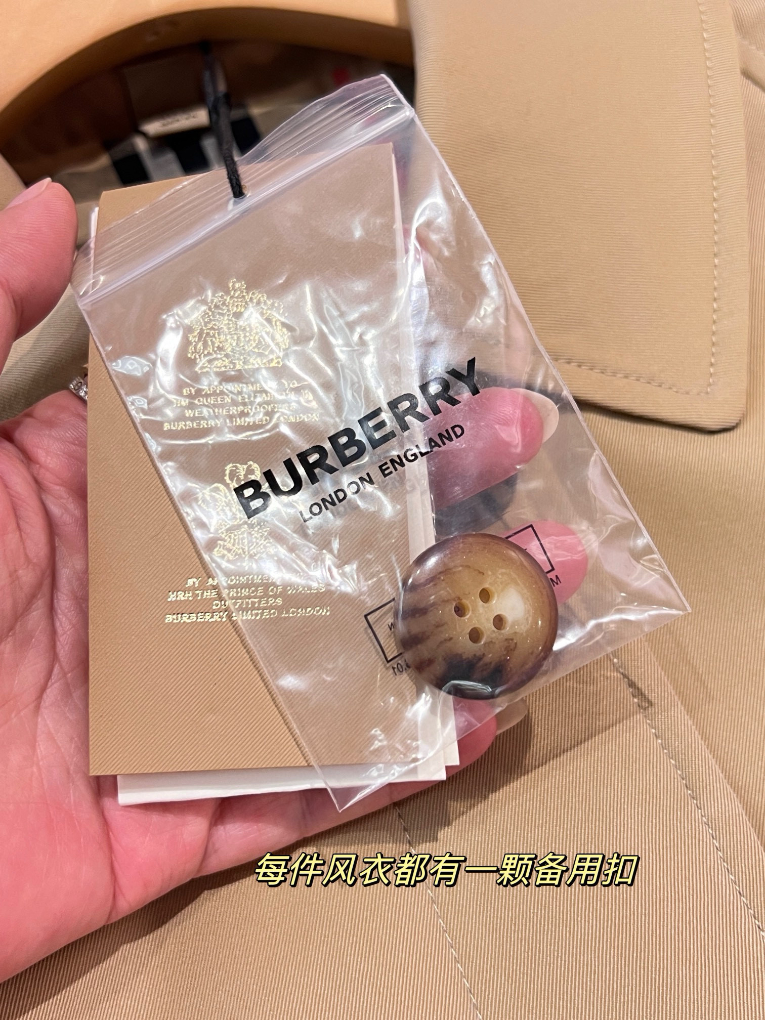 每件配置一颗备用扣,全部都有钢印~