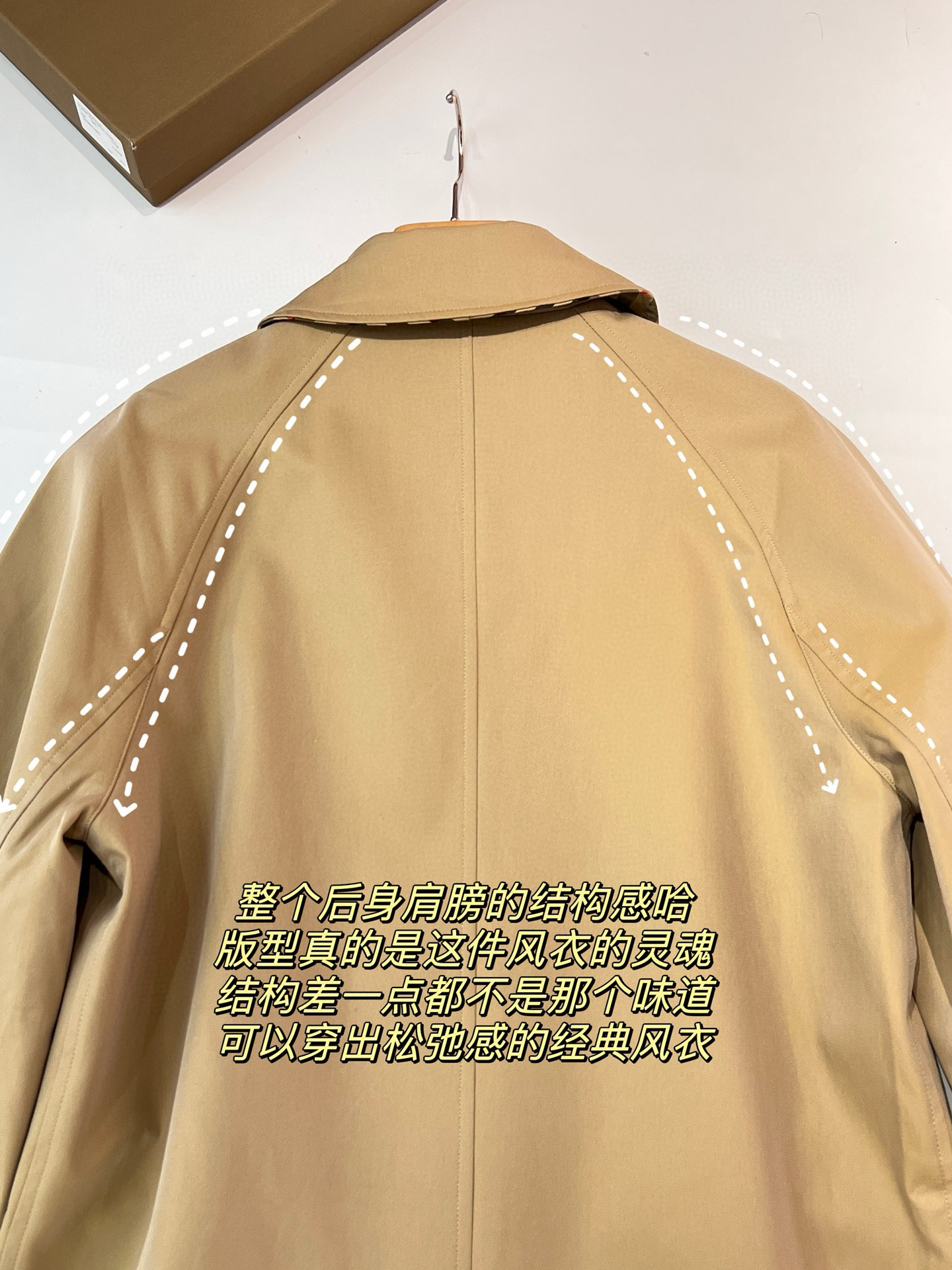 卡姆登风衣的灵魂,一个是肩袖、一个就是直筒大身。立体分片的插肩袖设计,腋下是错开节后哈,每个细节都交代的明明白白,上身更有包容性、更有舒适度,不会架在那里不舒服~