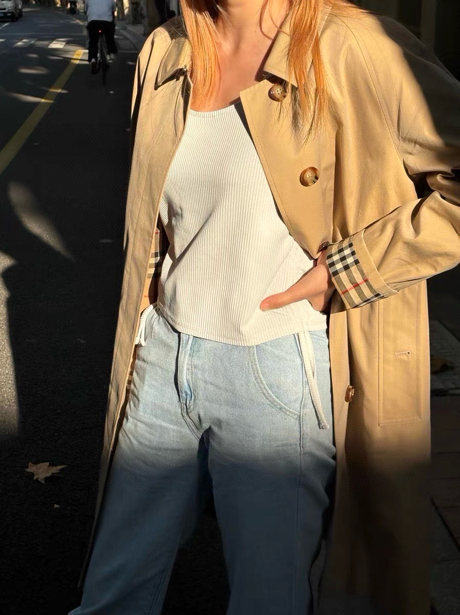 BURBERRY 卡姆登风衣,今年是新款卡姆登哈,全智贤同款的休闲版型,相比肯辛顿和切尔西我真的想说,卡姆登真的对身高相当友好,该说不说,肯辛顿和切尔西确保经典,但是这种又要带的风衣驾驭起来,说实话160左右的集美,可能需要一双高跟鞋才可以。但是这款卡姆登完全不会,偏直筒,偏休闲的风衣版型,上身主打一个随意性,随便配一双休闲鞋,运动鞋都很OK,而且是小个子的集美真的巨巨巨友好,一样可以穿出来的高级感和气场,这件卡姆登真的好看,大家相信我,适配度100%,完全 不挑。