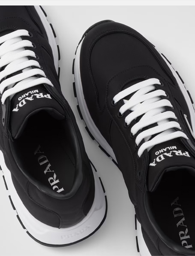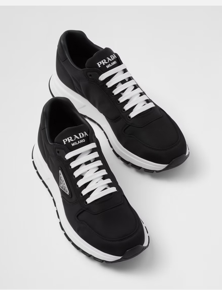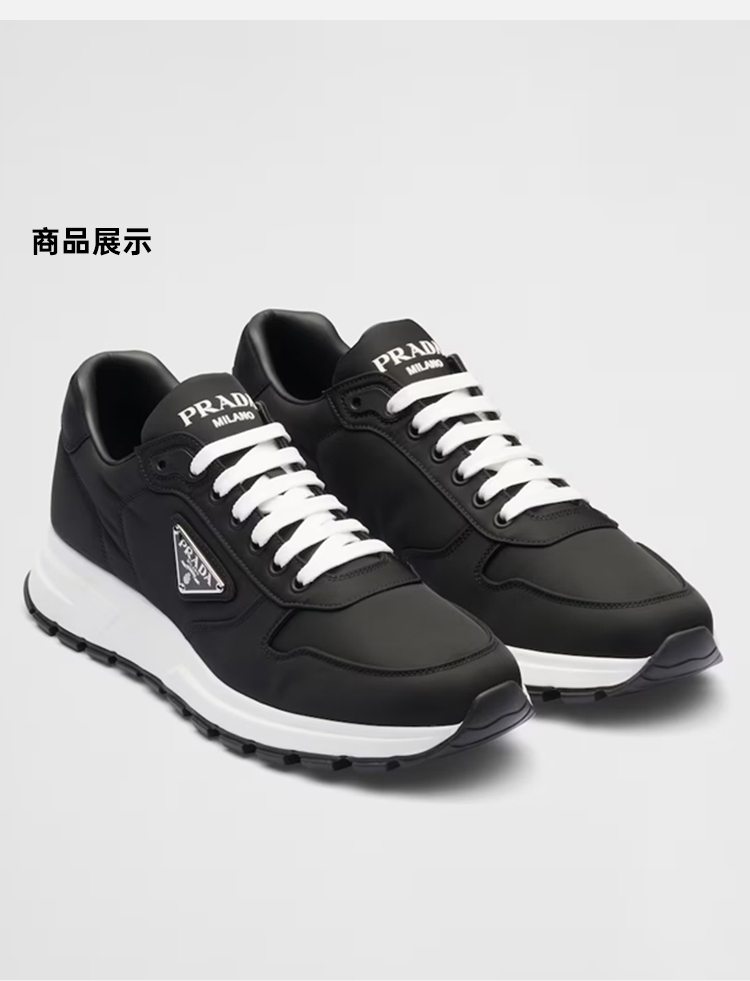 【三】PRADA 普拉达 男士珐琅金属三角徽标Re-Nylon休闲运动鞋 黑色 2EE369 3LFV F0632