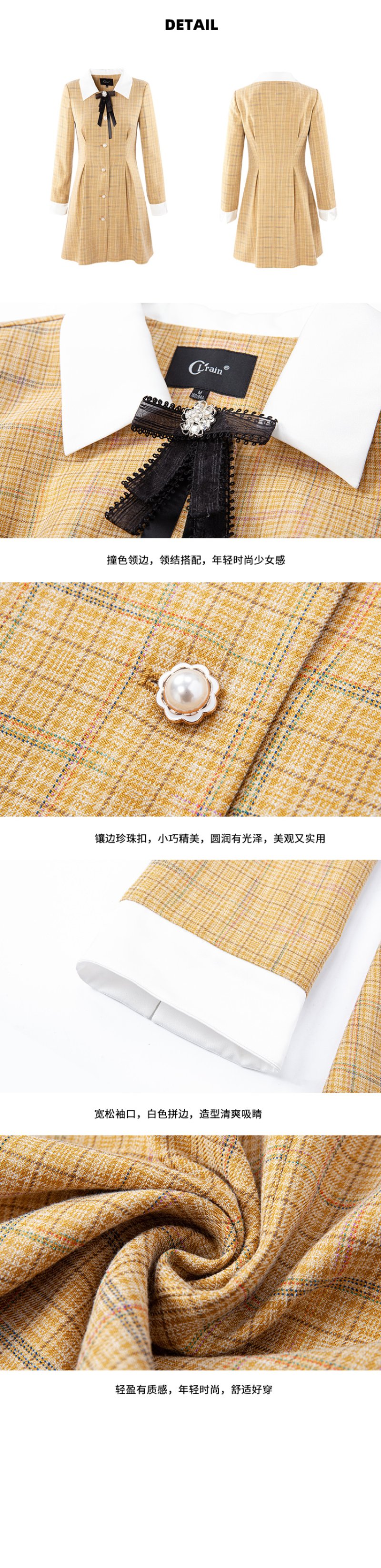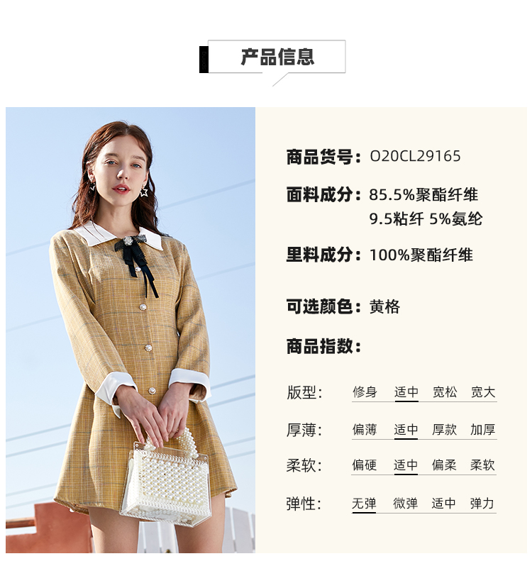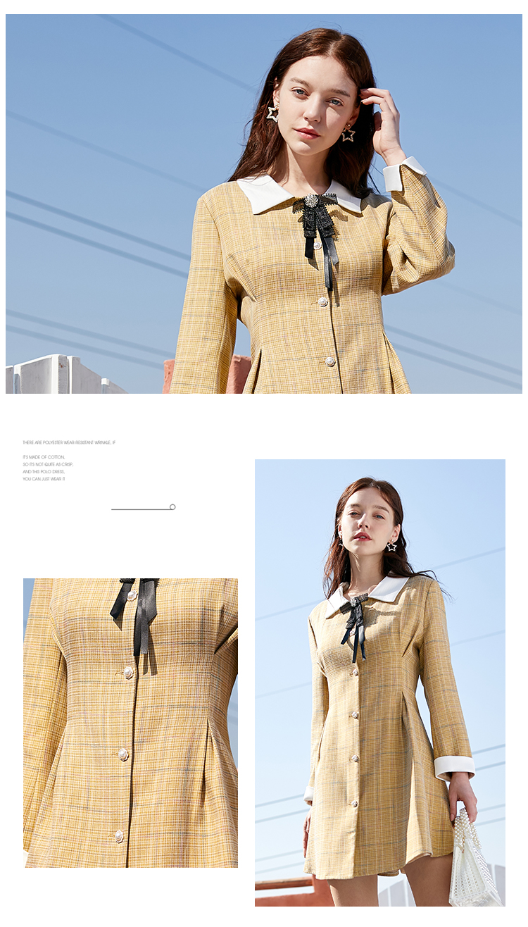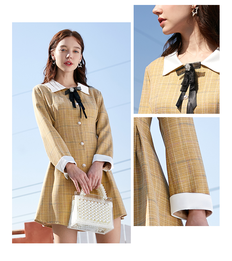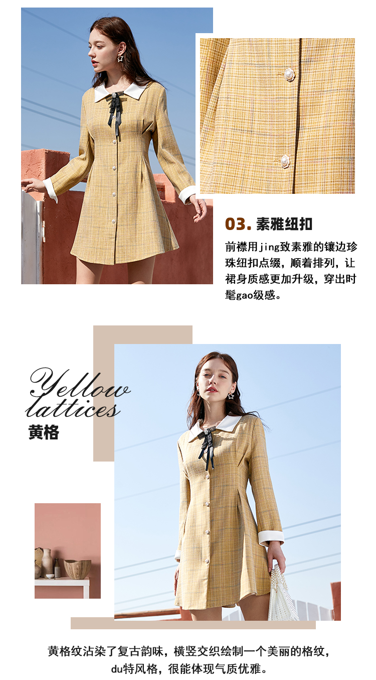 欧芮儿春新款长袖格子连衣裙女中长款洋气小个子收腰A字裙