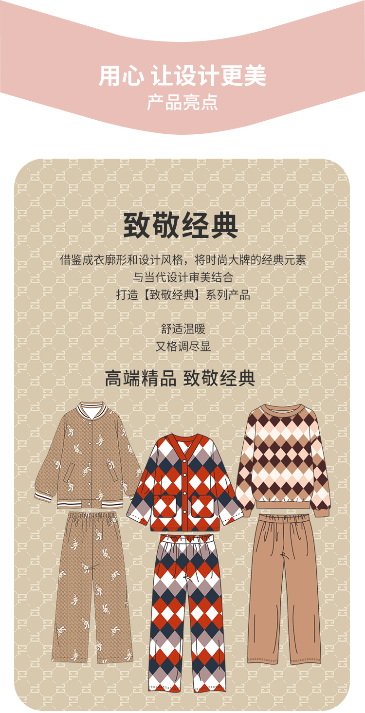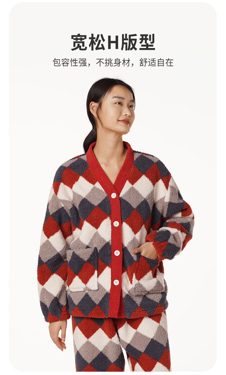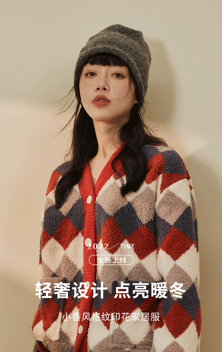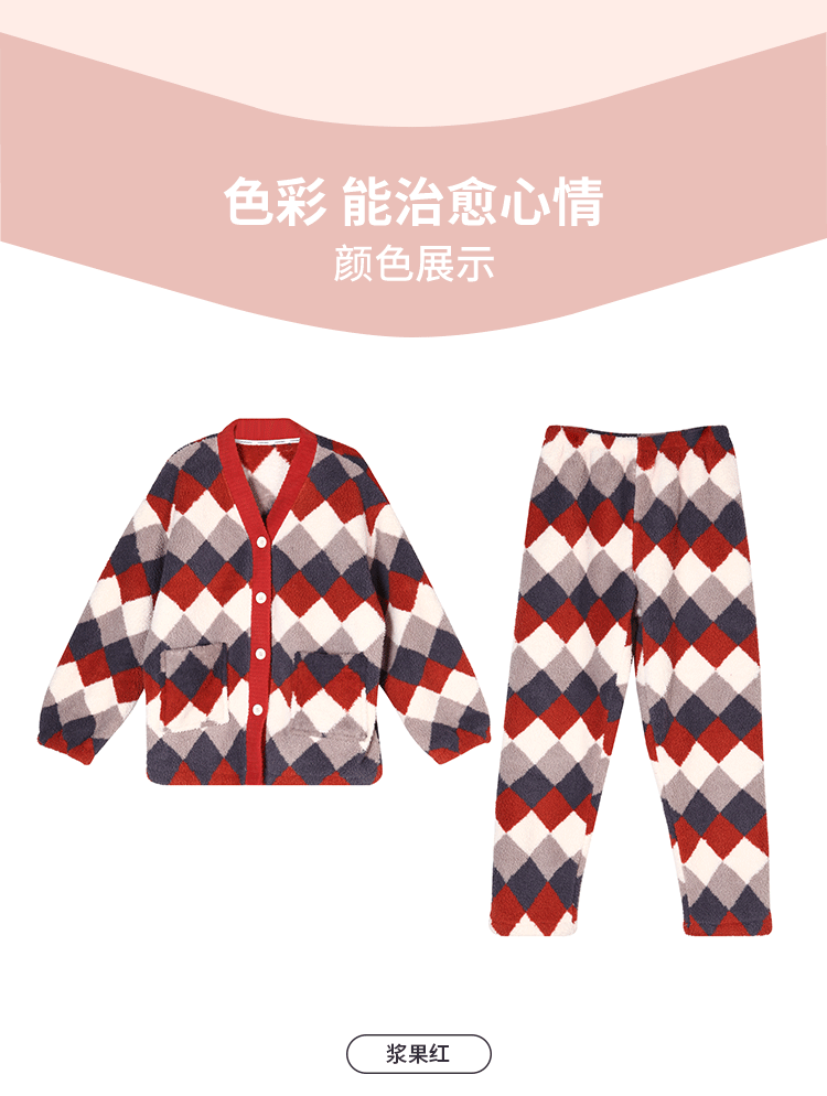 都市丽人舒适外出女士睡衣高端臻品米粒绒家居服新年本命年红品LH21L4