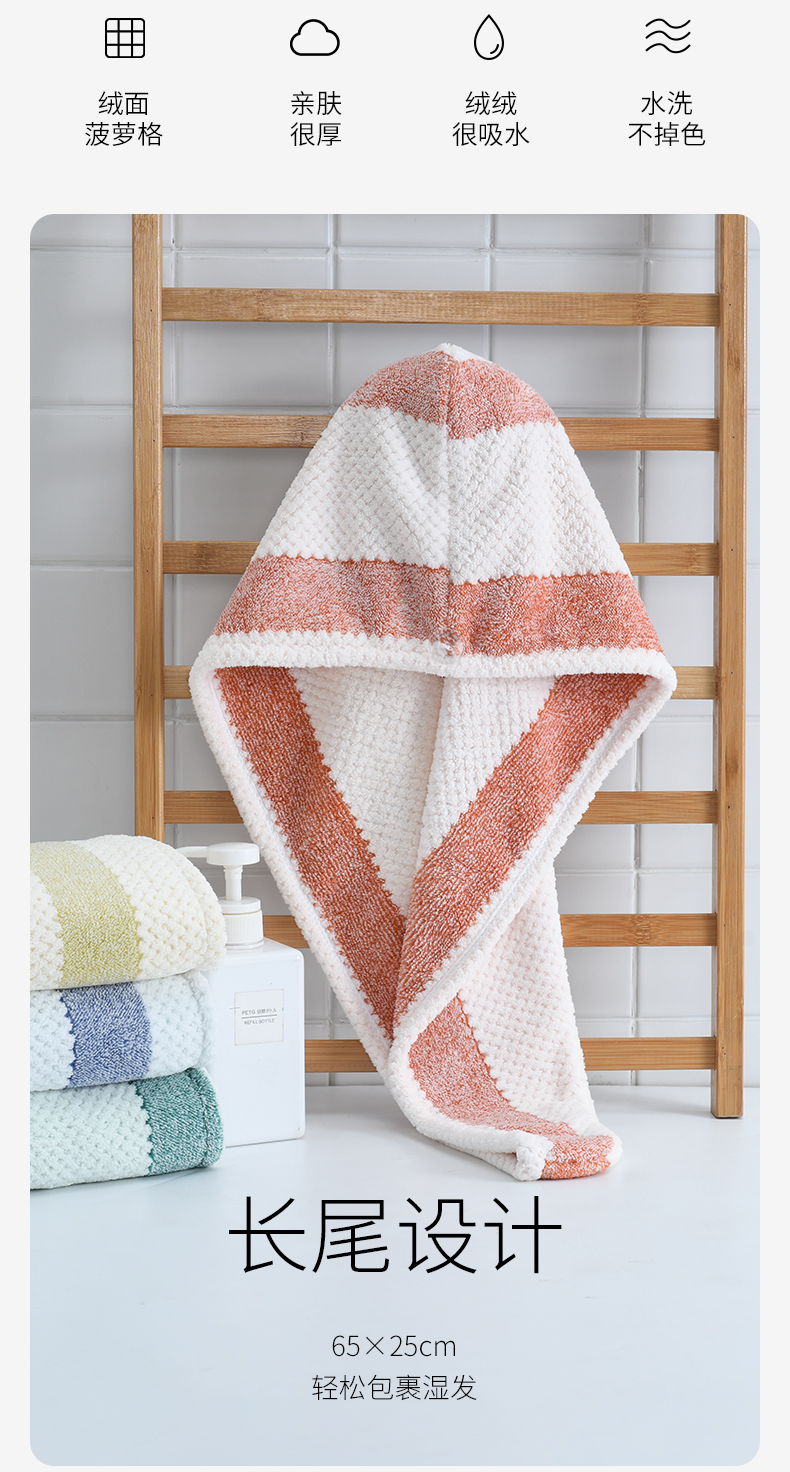 洁丽雅条纹干发帽加厚超强吸水新款女擦头发洗头毛巾浴帽包头干发