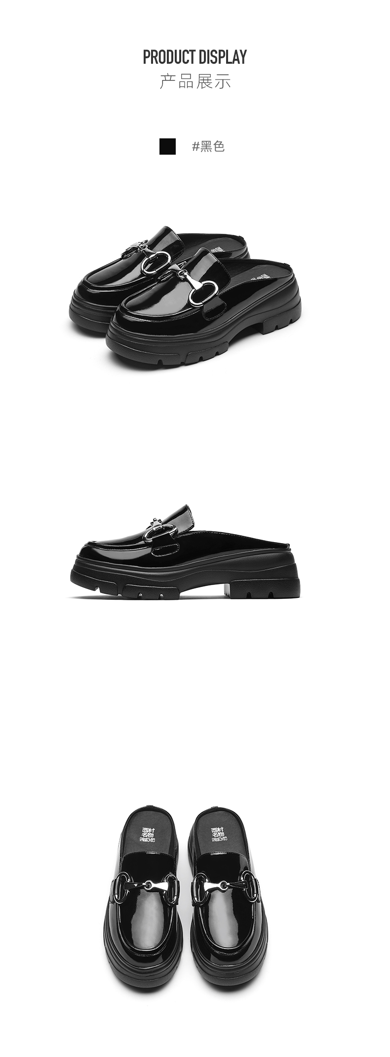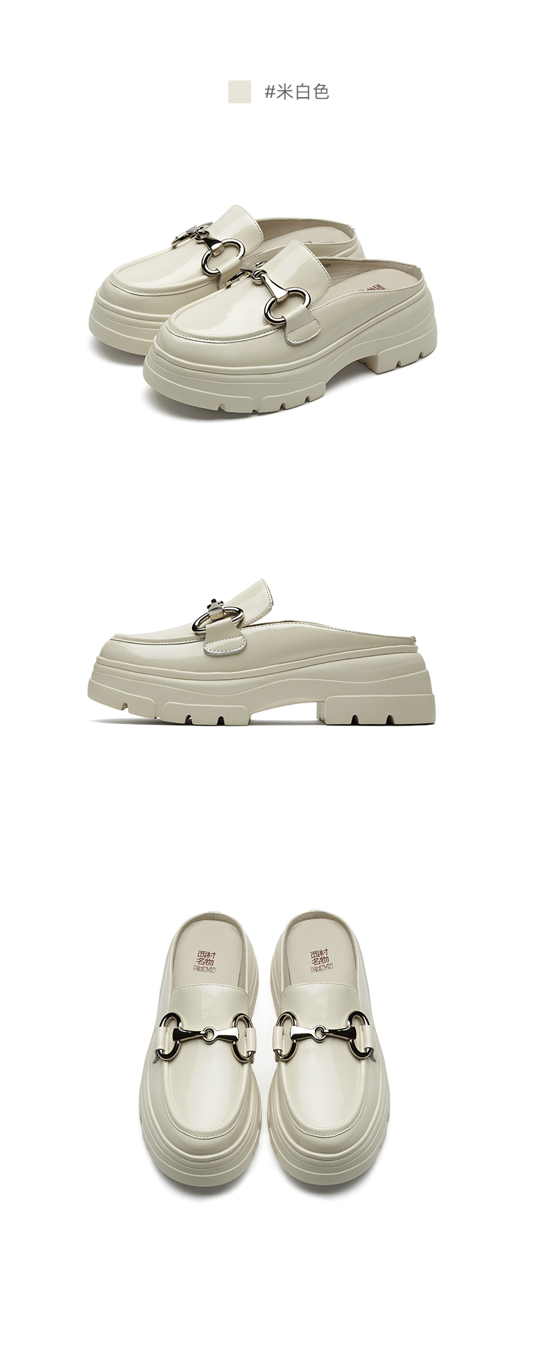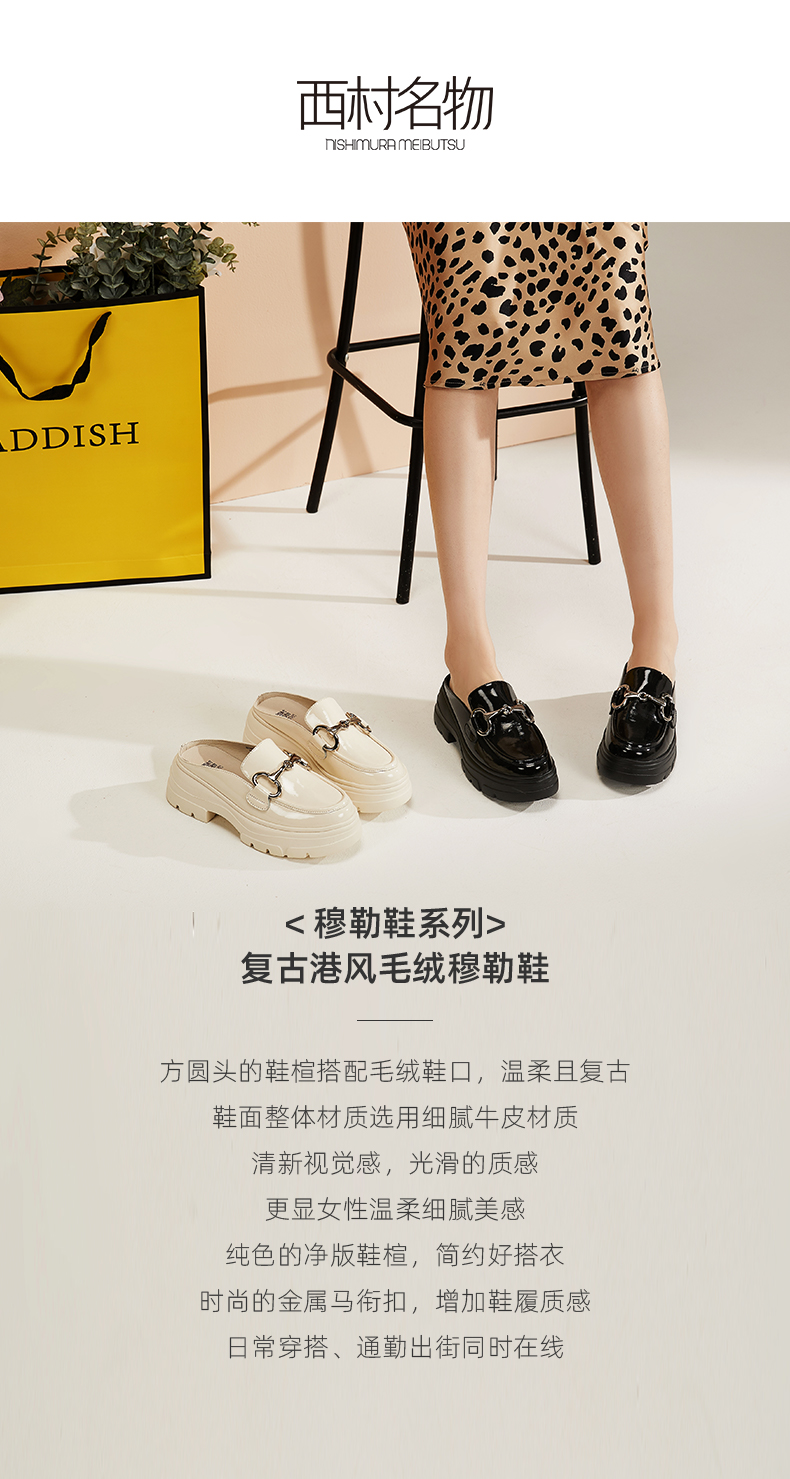 西村名物夏季新款厚底松糕漆皮凉拖女牛皮革包头穆勒鞋X21AH14021