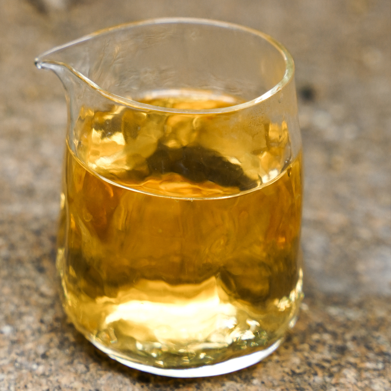 茶汤金黄透亮,自然馥郁的蜜香喷薄而出,经久不散,汤色和滋味都很稳定;轻轻抿一口茶汤,舌尖就能够感觉到一股蜜甜感,茶汤入口后馥郁的蜜香喷薄而出划遍了口腔的每一个角落,入喉细腻,软而不弱,随之回甘生津源源而来持久且绵润,这个时候口腔内都是茶汤带来的清甜感,很有厚度和柔度,能明显感觉出茶汤的力度,微苦涩,但是化的很快,到喉部一带时已转化为甘味。