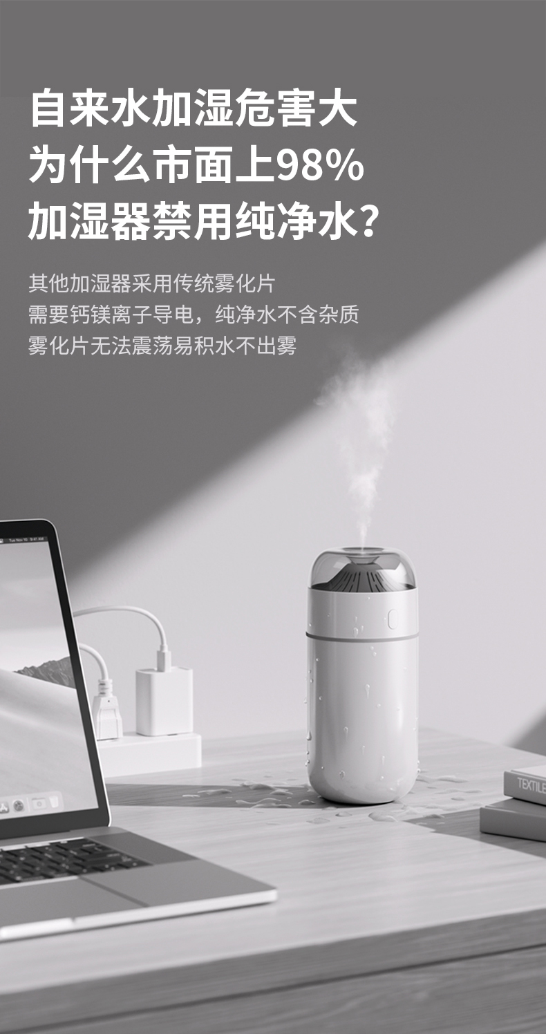 几素 轻润加湿器HU16 小型便捷 办公室卧室宿舍家用 澎湃大雾量 48小时发货