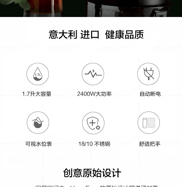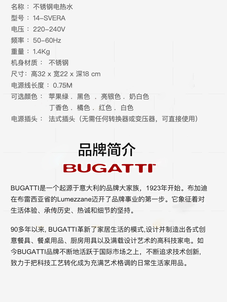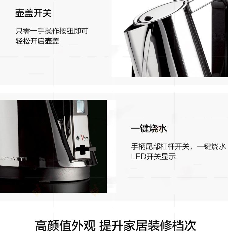 意大利进口 BUGATTI 布加迪不锈钢电热水壶烧水壶
