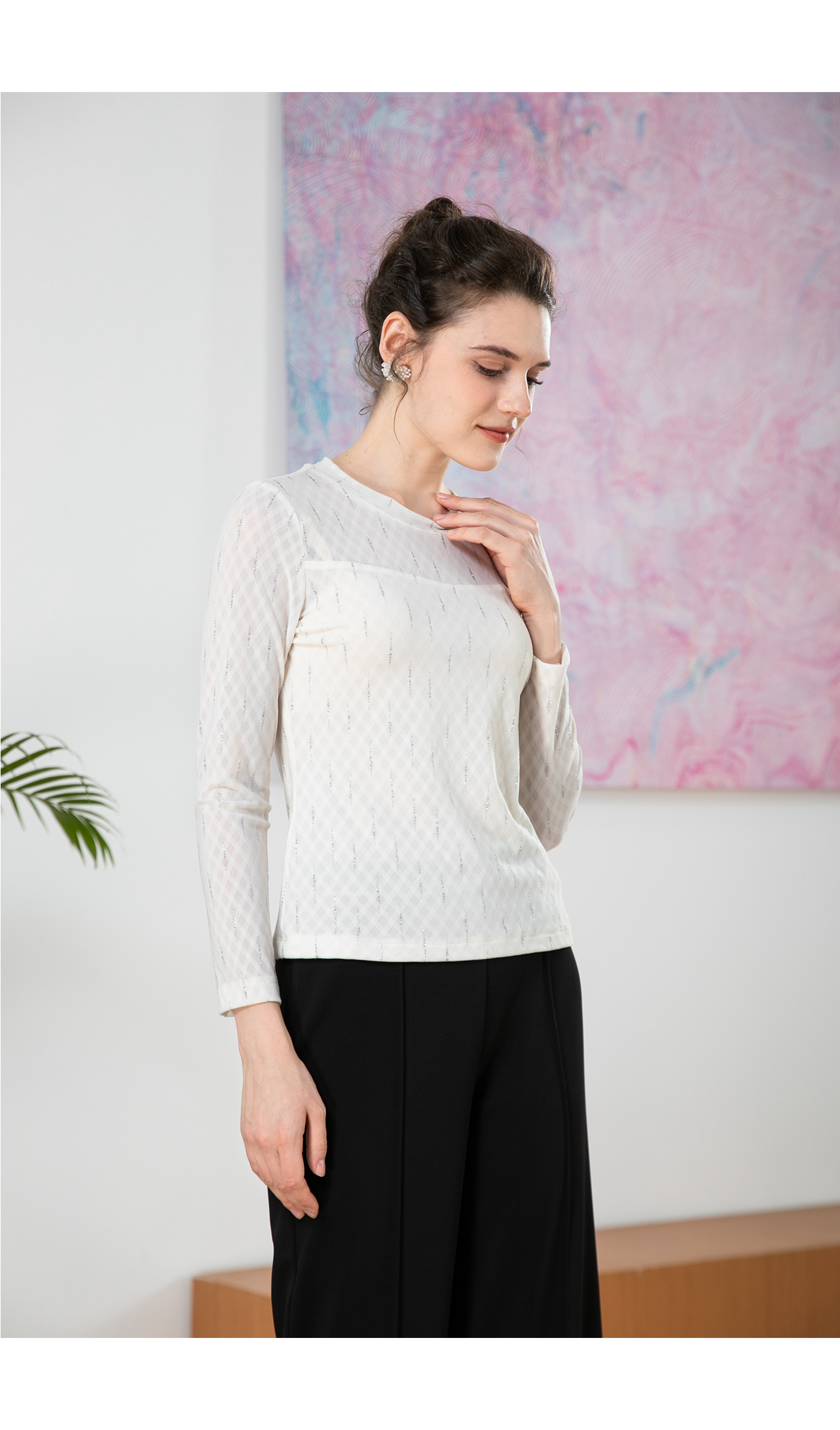 司歌弹力亮丝打底上衣套头长袖女春秋T901145X