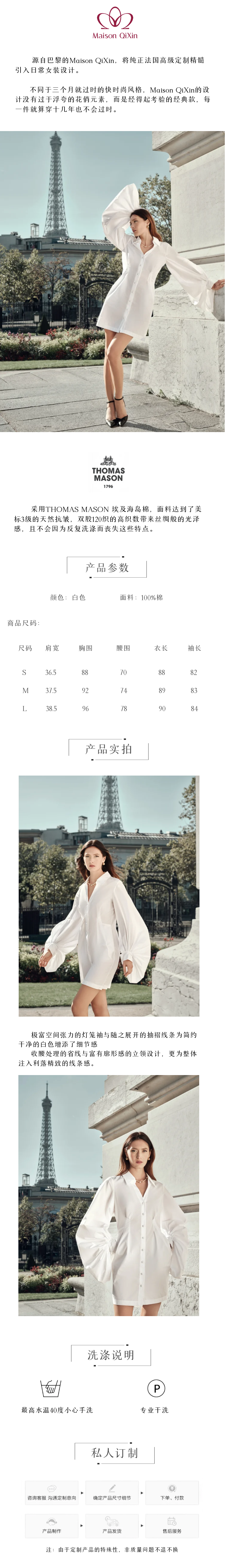 MaisonQiXin R230426 设计感灯笼袖收腰衬衫裙