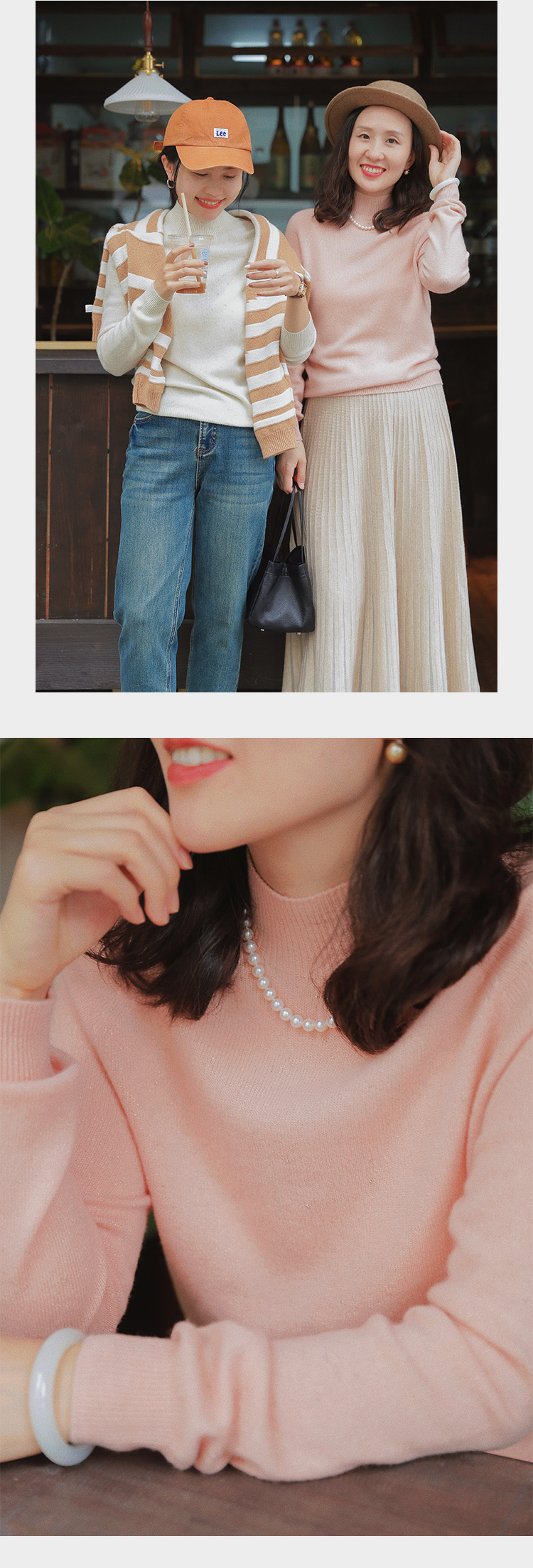 一姐|聚好看 亮丝金豆豆都秋冬中高领 100%羊毛慵懒针织衫