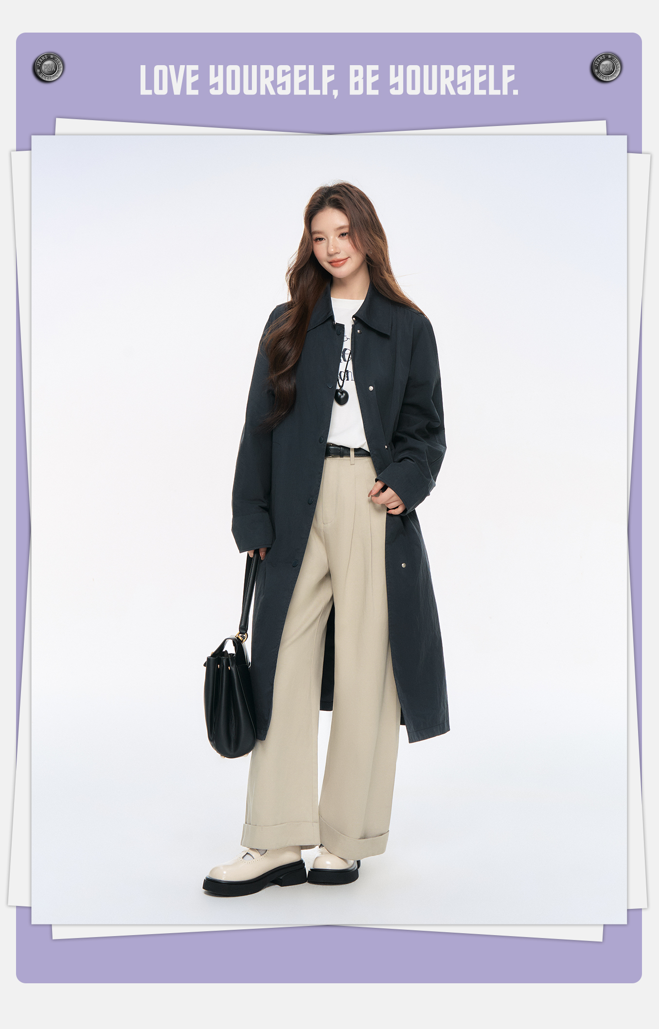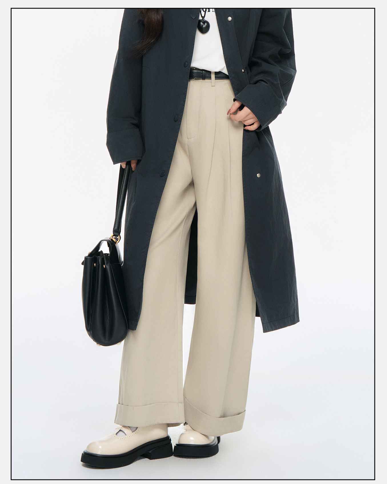 P&X设计师女装2025秋季阔腿通勤百搭梭织休闲长裤 825309169 灰绿