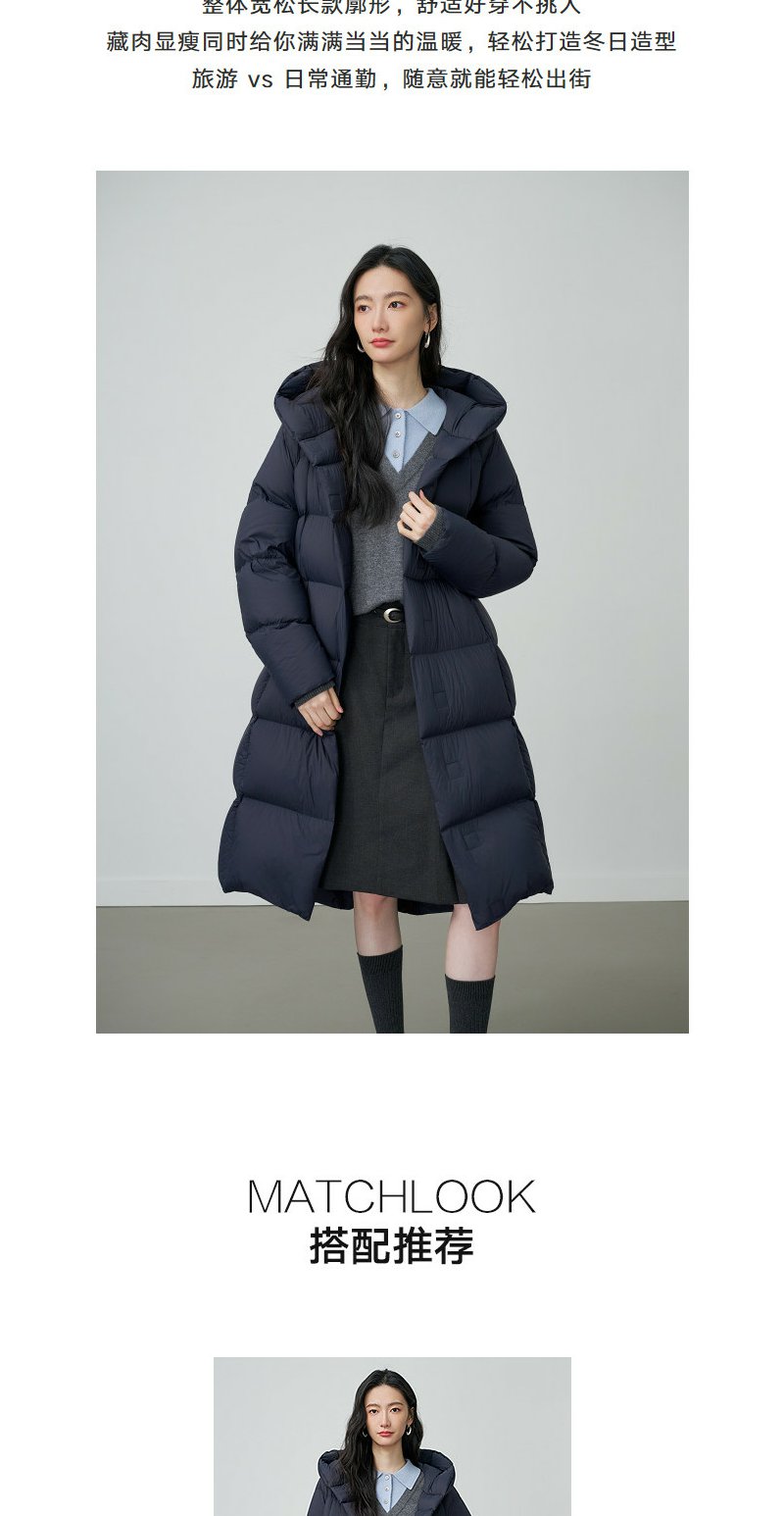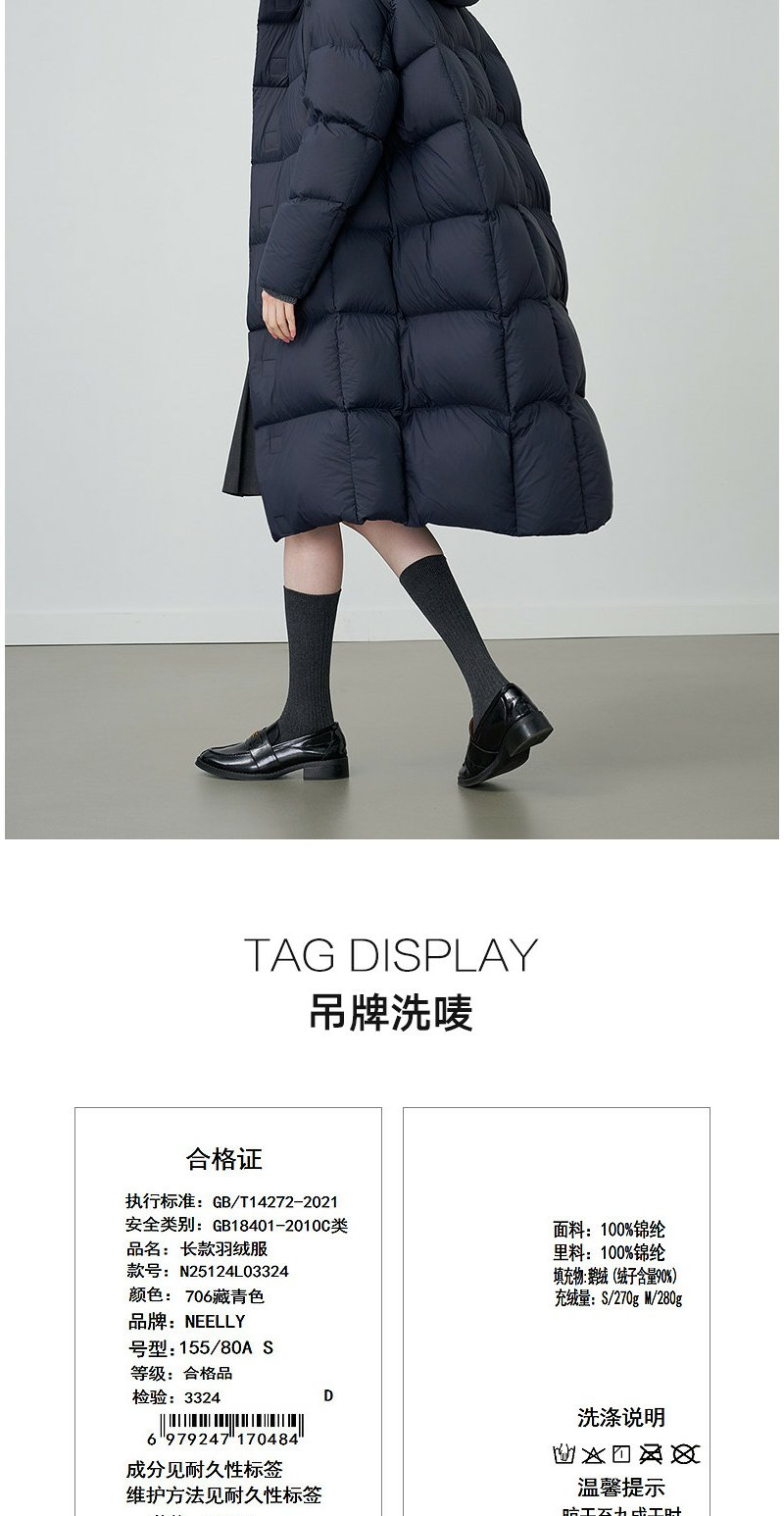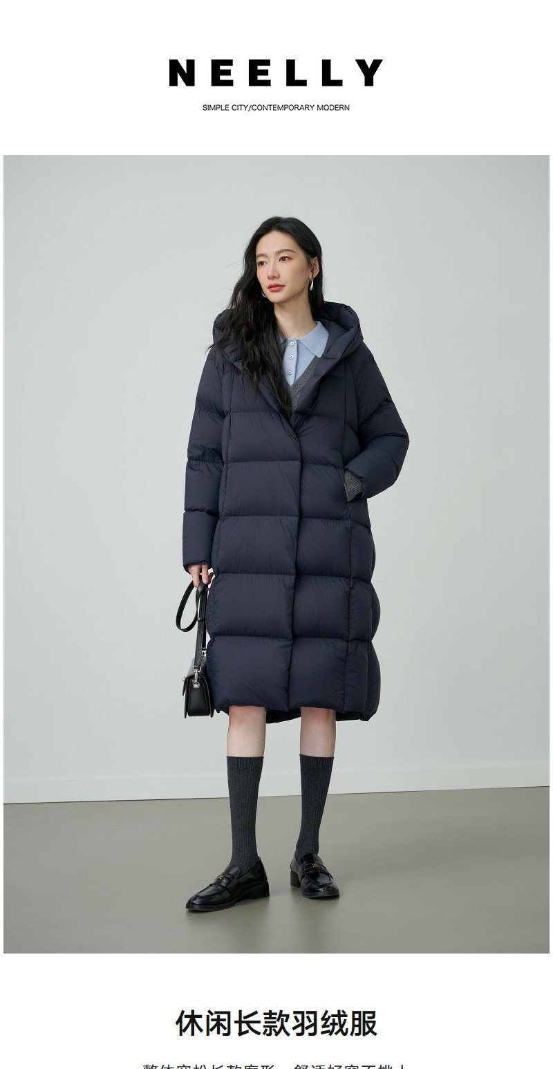NEELLY纳俪商场同款冬季新款宽松休闲长款羽绒服女90鹅绒保暖外套N25124L03324