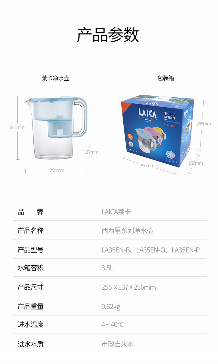 LAICA莱卡西西里滤水壶LA35EN意大利进口滤芯