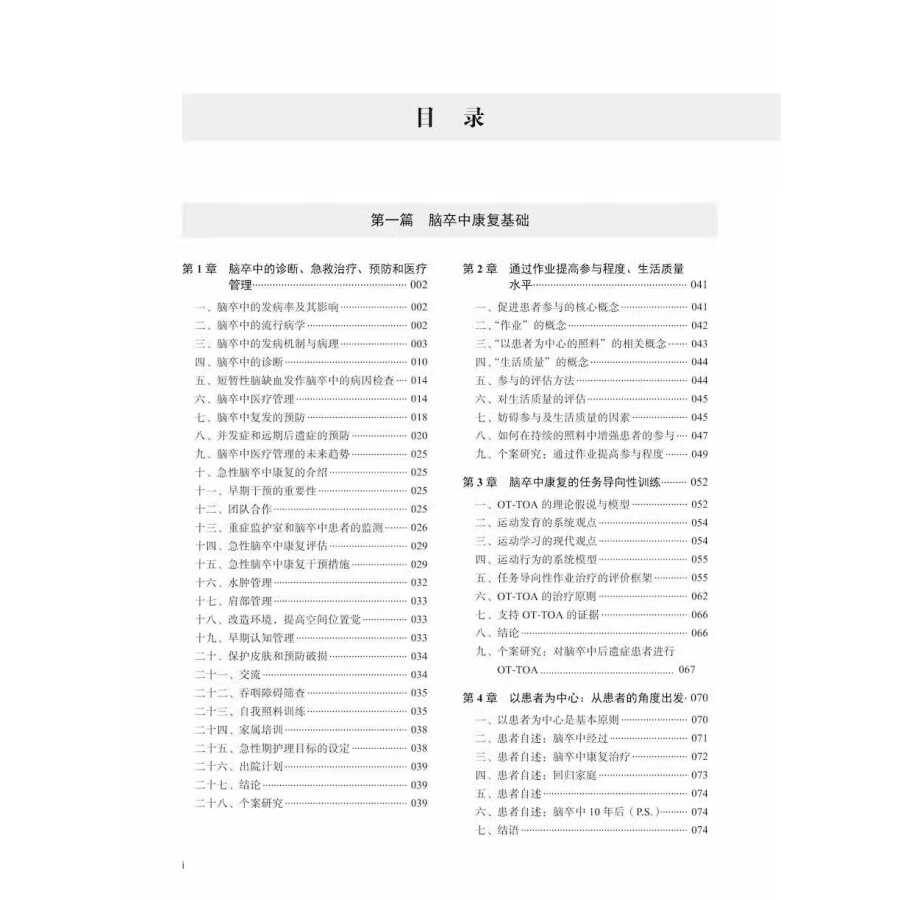 本书引进自 Elsevier 出版社,由美国哥伦比亚大学医学中心的 Glen Gillen 教授和Dawn M.Nilsen 教授联合全球专家共同打造。 1998 年初版至今,24 年里,本书广受赞誉,现更新至第 5 版,分为三篇 30 章。全书以患者为中心的理念贯穿每个康复环节,强调多学科团队合作的治疗模式对脑卒中患者的巨大价值,明确Z大限度参与生活是脑卒中患者康复的首要目标,采用循证医学的评估和治疗方法(包括矫正和适应方法)、任务导向性训练,既对脑卒中后上肢控制、躯干控制、平衡等运动障碍进行标准化评估和循证干预,又对心理障碍和神经行为缺陷(如抑郁、视觉及视空间功能障碍、认知障碍、知觉障碍、语言障碍和吞咽障碍)进行有效管理,是脑卒中后康复相关专业临床医生、研究人员、理疗师、护理人员和医学生难得的学习教材。