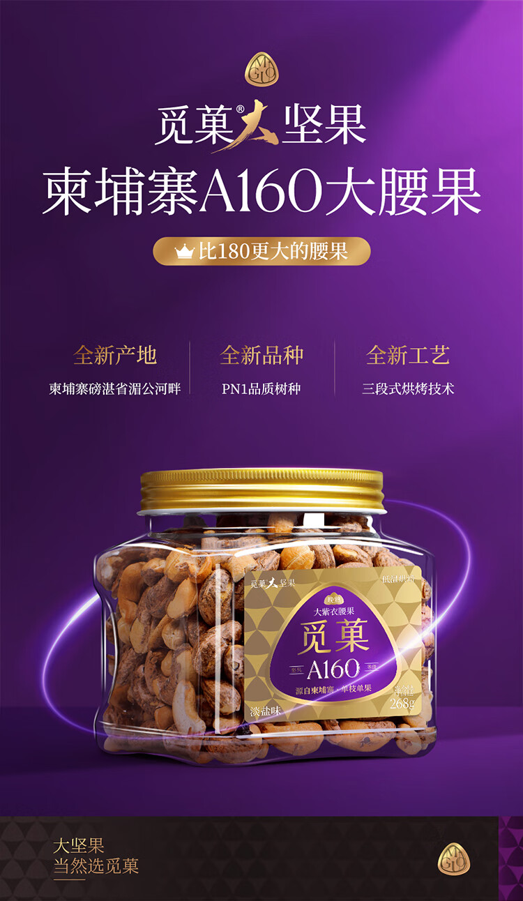 觅菓柬埔寨A160大紫衣腰果268g 152814 每日坚果干果