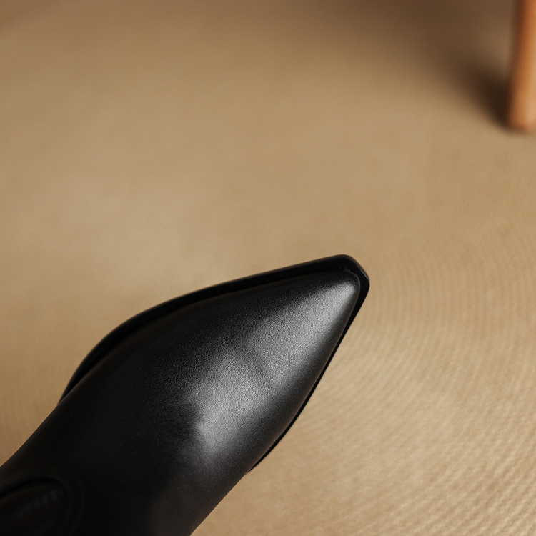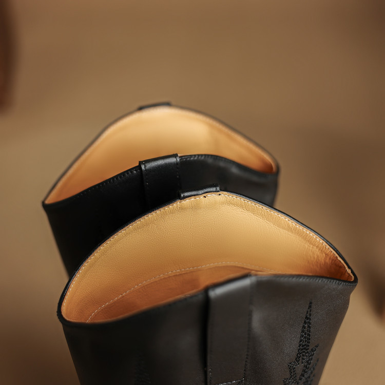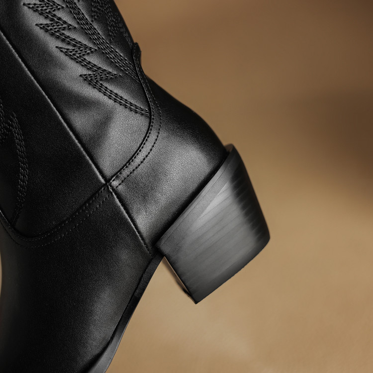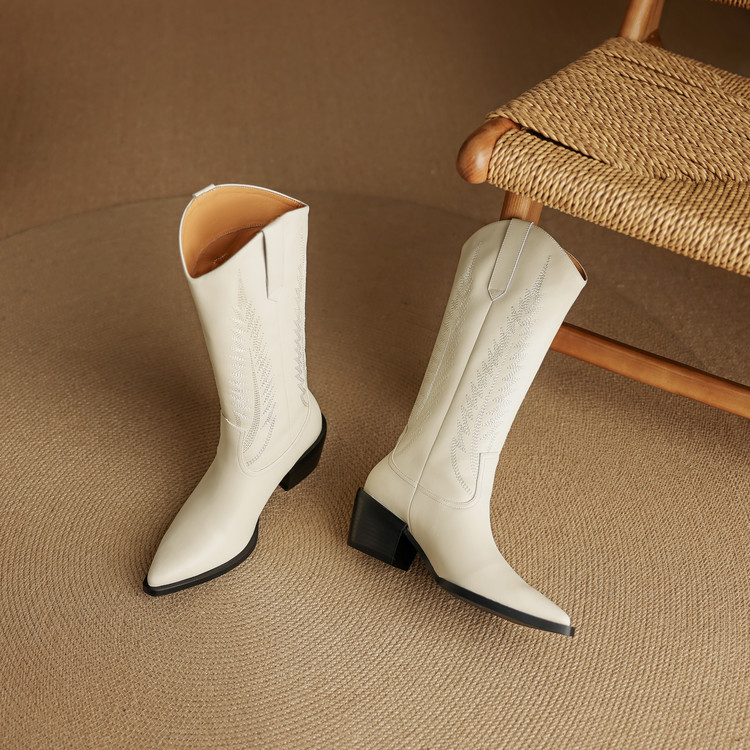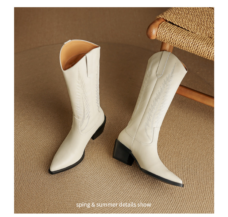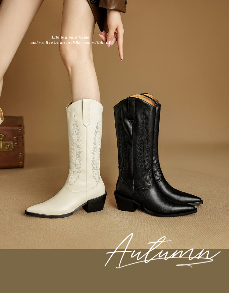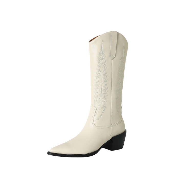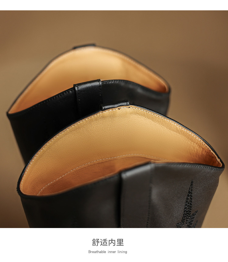 【预售5天】尖头高筒西部牛仔靴女秋冬新款真皮粗跟骑士靴百搭不过膝长靴XMN&H825