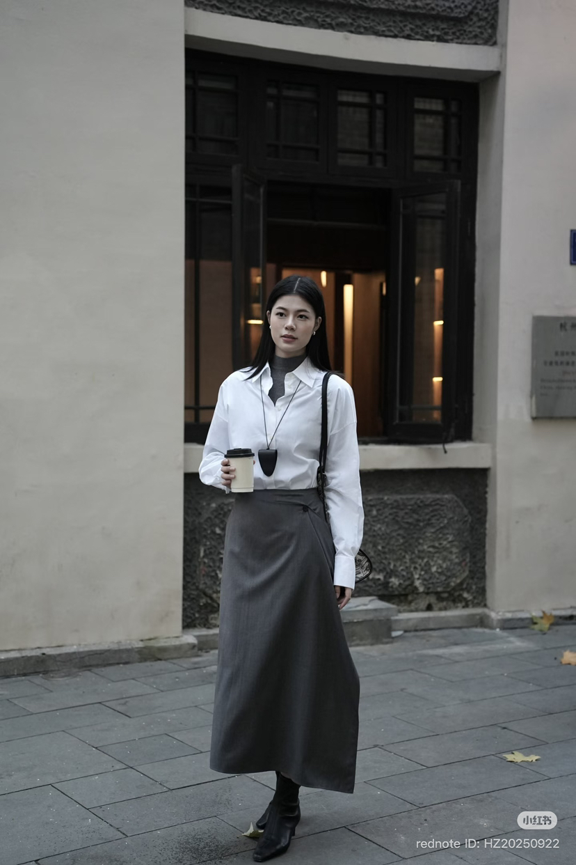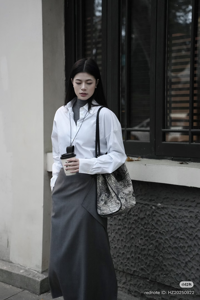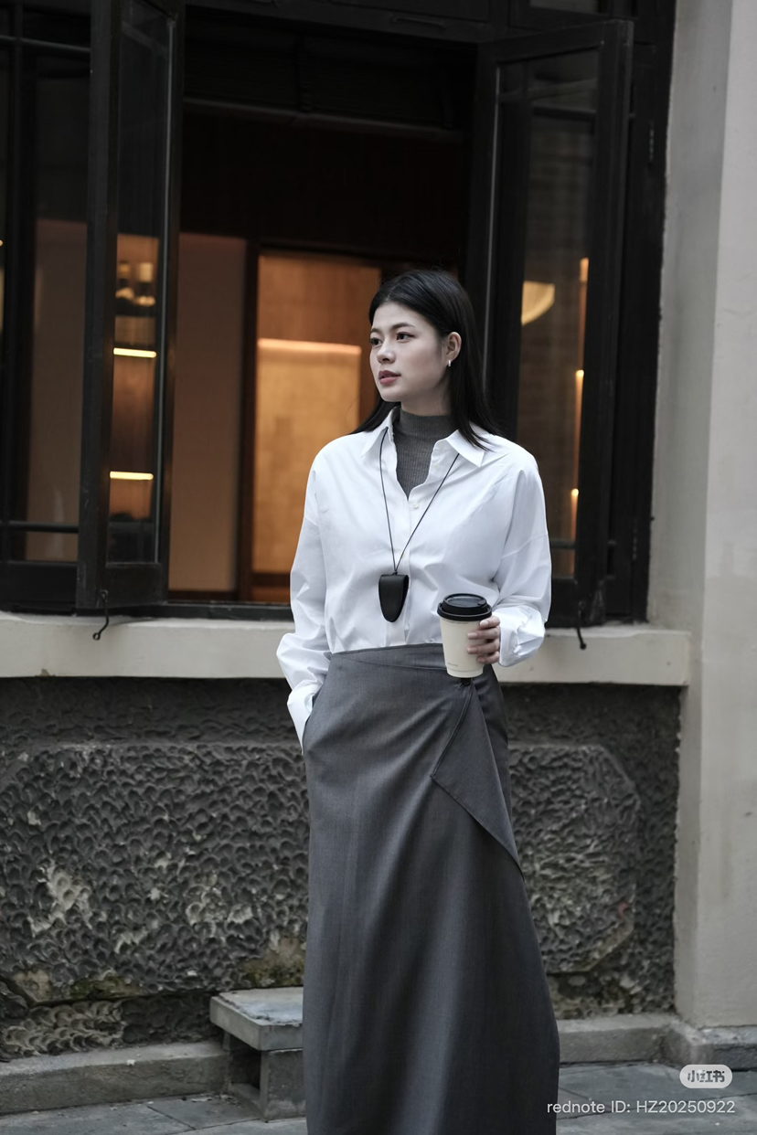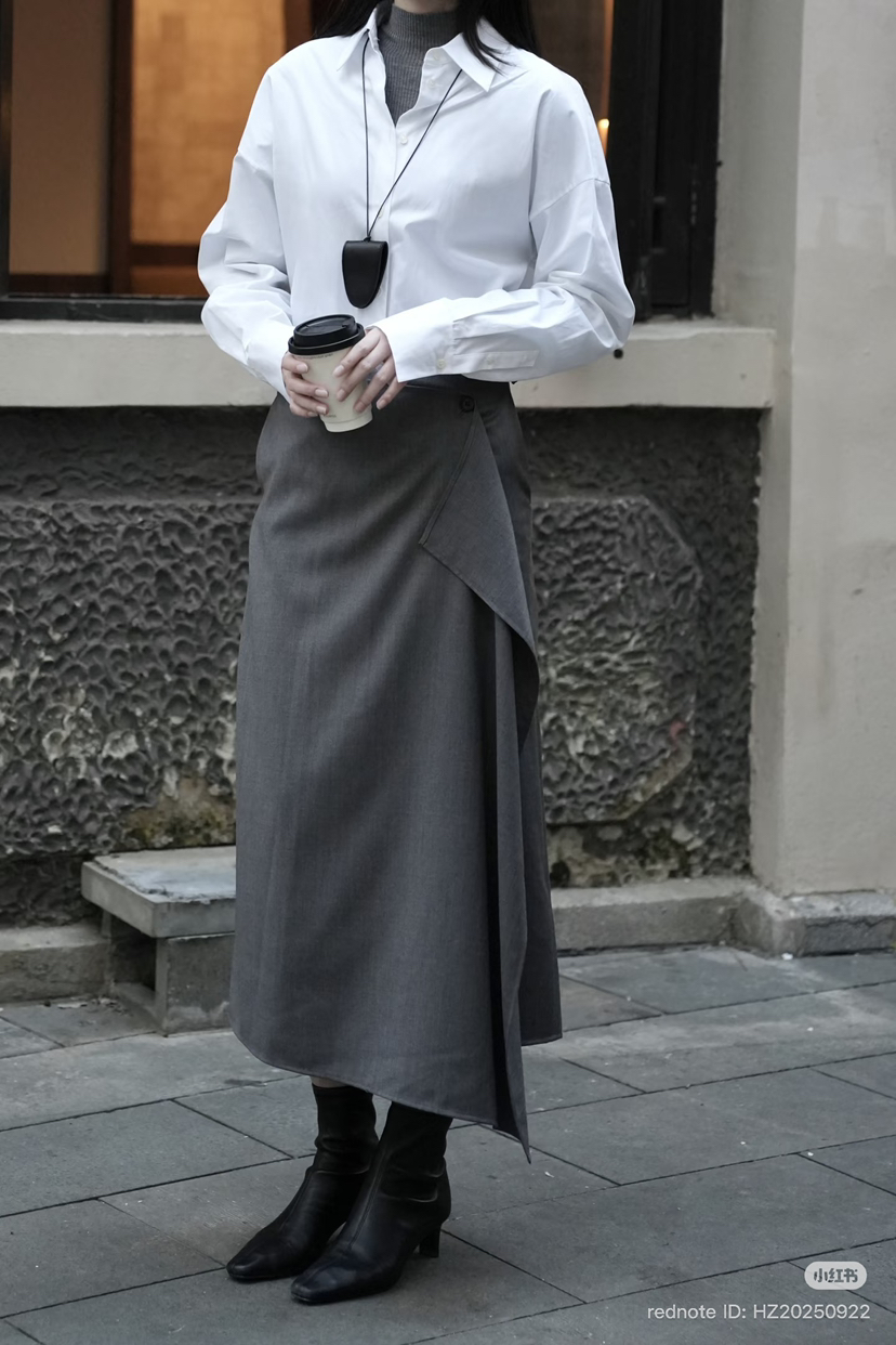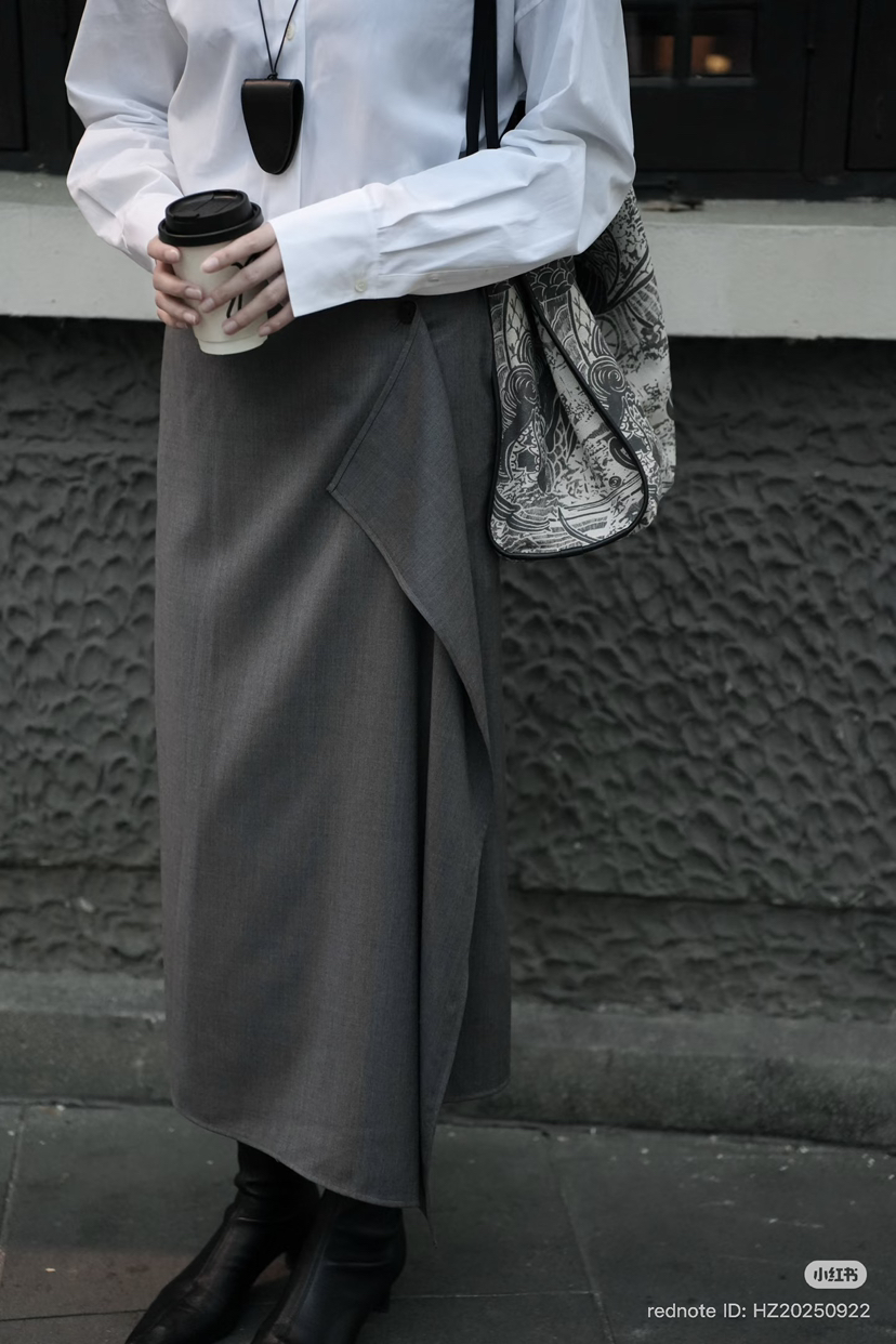 314-5 独家圆正 小禾 精纺羊毛 设计感 褶皱 半身裙