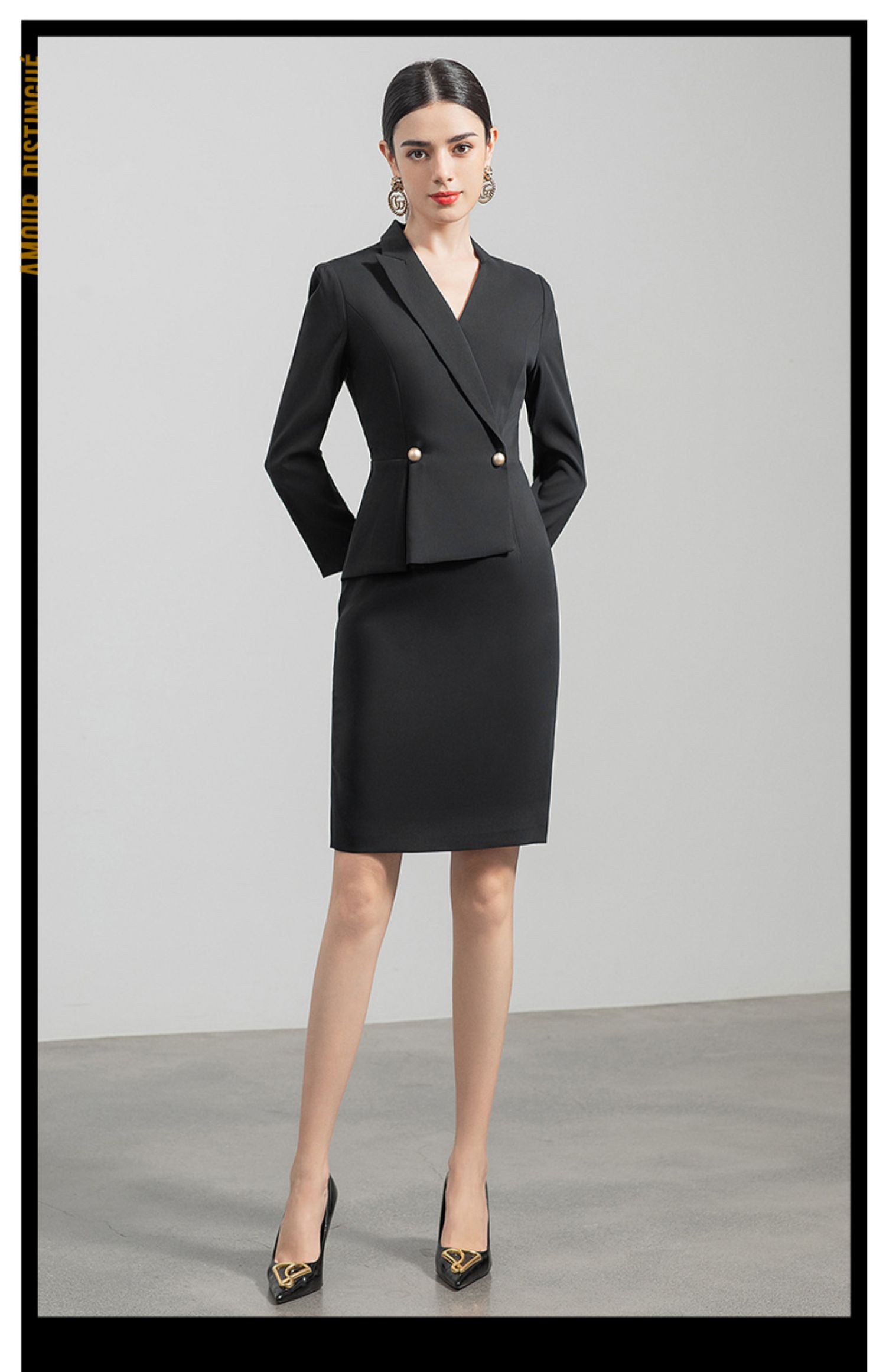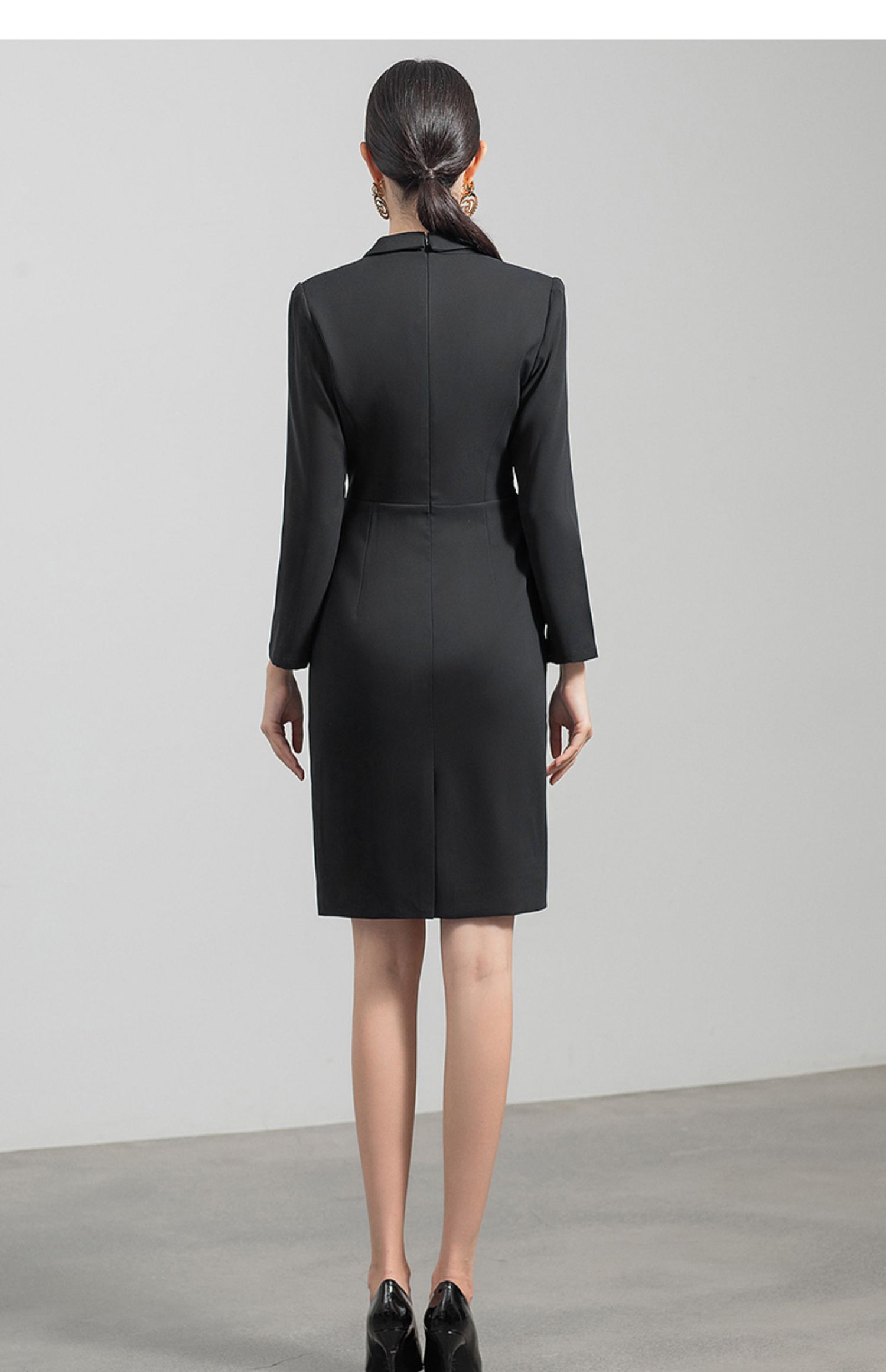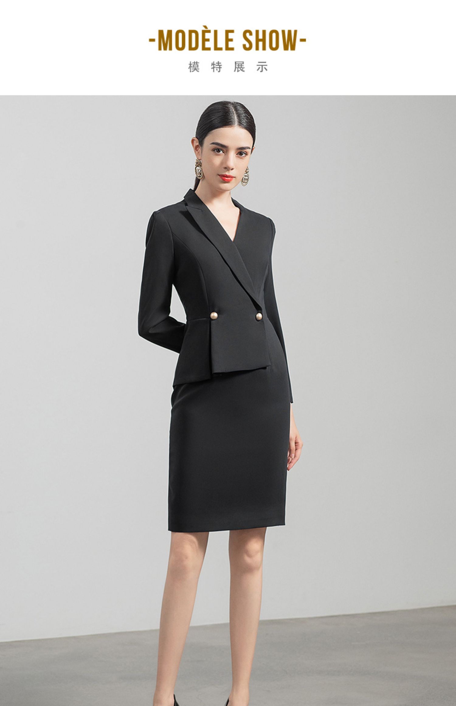 IWY/黑色售楼部工作服女高端职业连衣裙春秋新款酒店前台西装裙子 NQ520-B