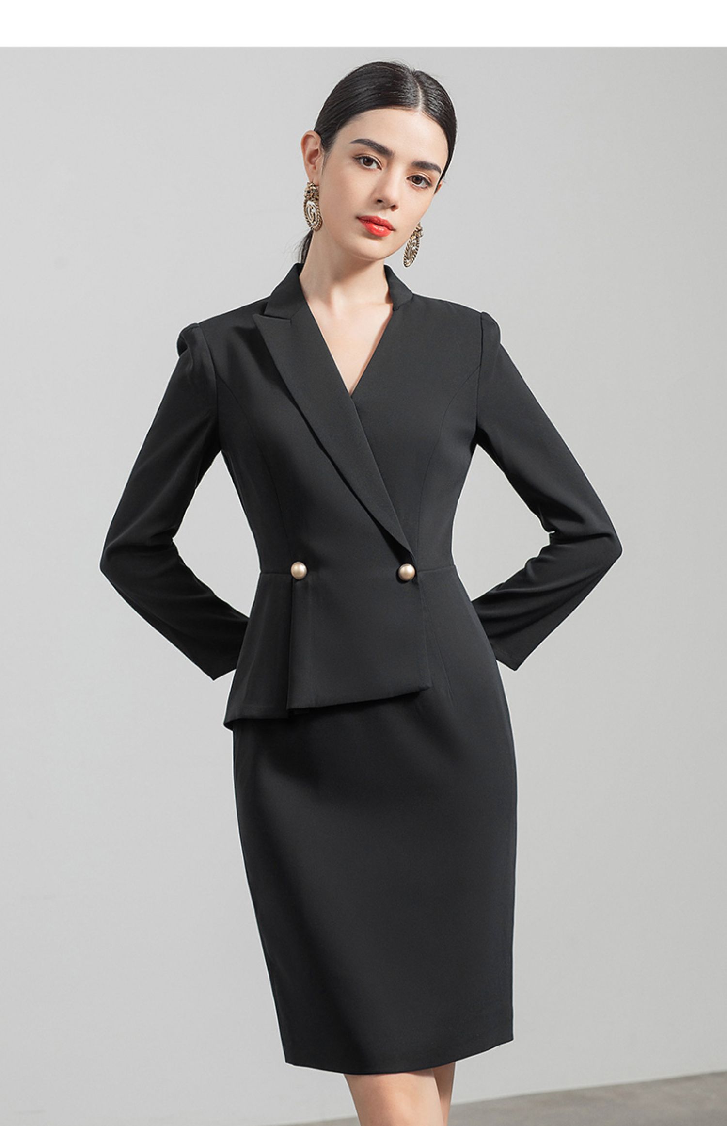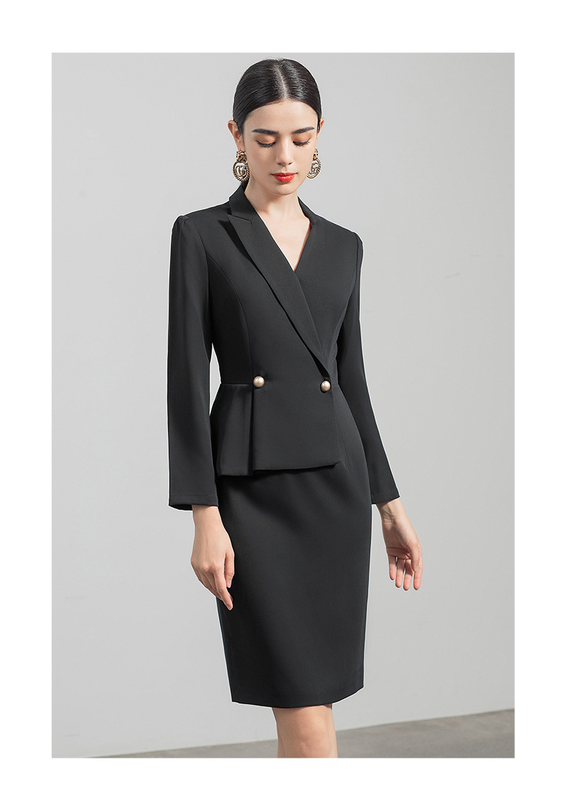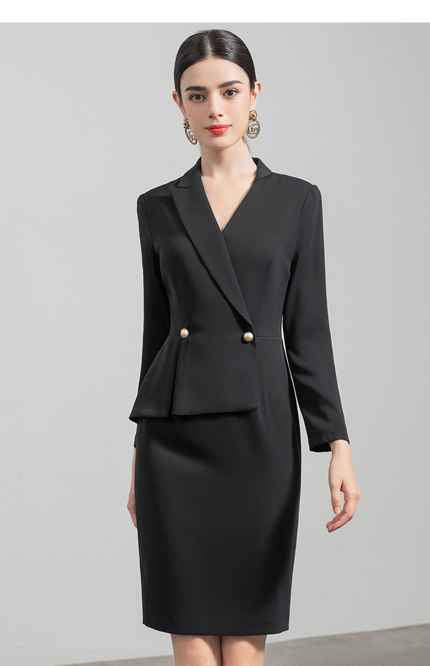 IWY/黑色售楼部工作服女高端职业连衣裙春秋新款酒店前台西装裙子 NQ520-B