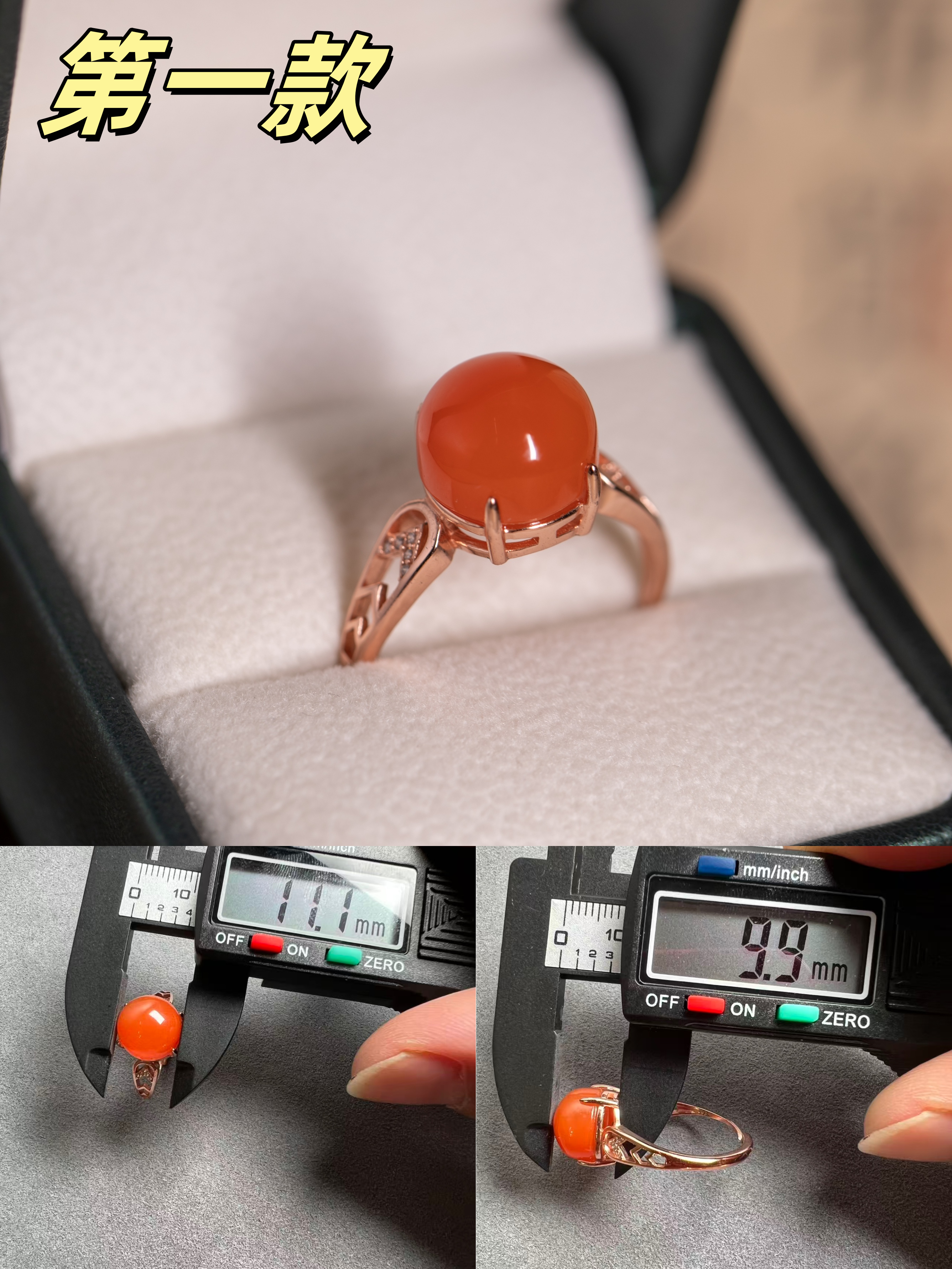 附证书【原矿川料 南红】戒指,活口可调节。925银镀金 玫瑰金❤️天然川料樱桃红,无裂饱满,值得珍藏。玫瑰金镶嵌,特别衬大气优雅的气质【非质量问题不退换】