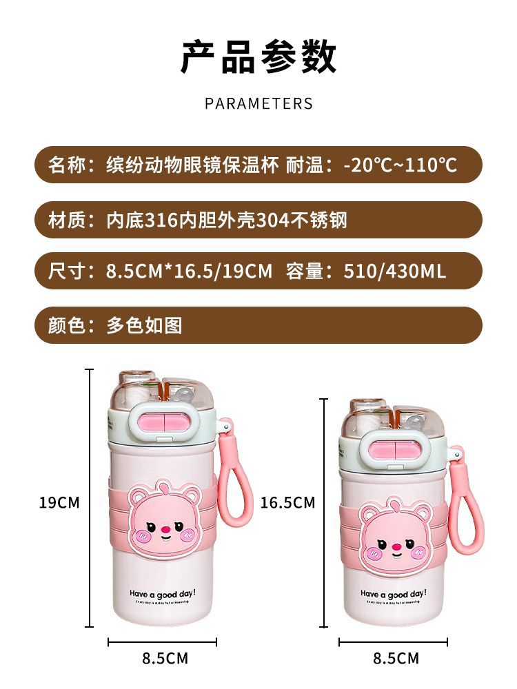 【母婴级内胆!放“芯”喝水】内置硅胶密封圈,开学季儿童316不锈钢保温杯女学生学水杯高颜值便携手提双饮吸管杯子。ra