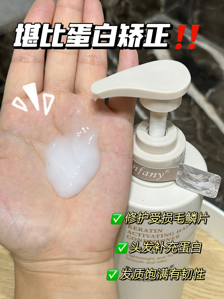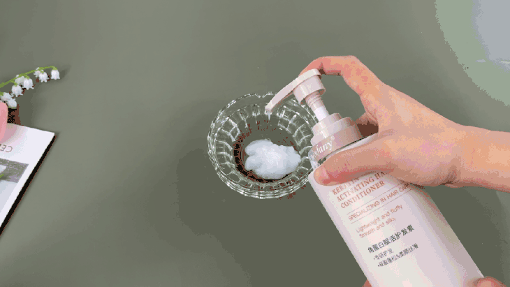 护发素挤出来是牛奶般的白色乳霜质地 10s就能被头发充分吸收。