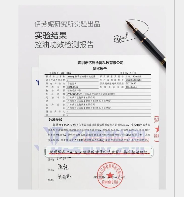 不是我夸张,它的控油效果 也是经过权威机构认证的!