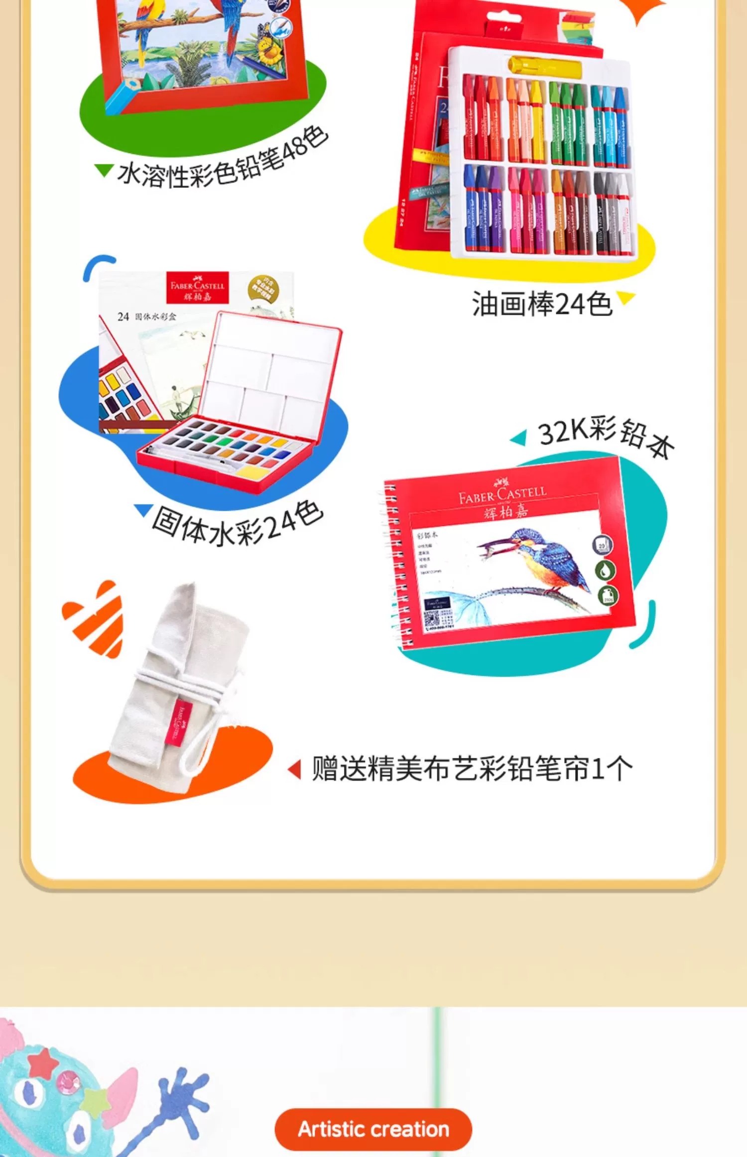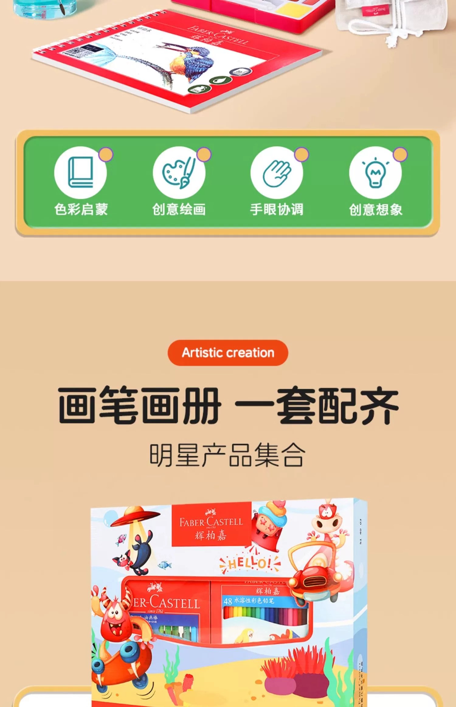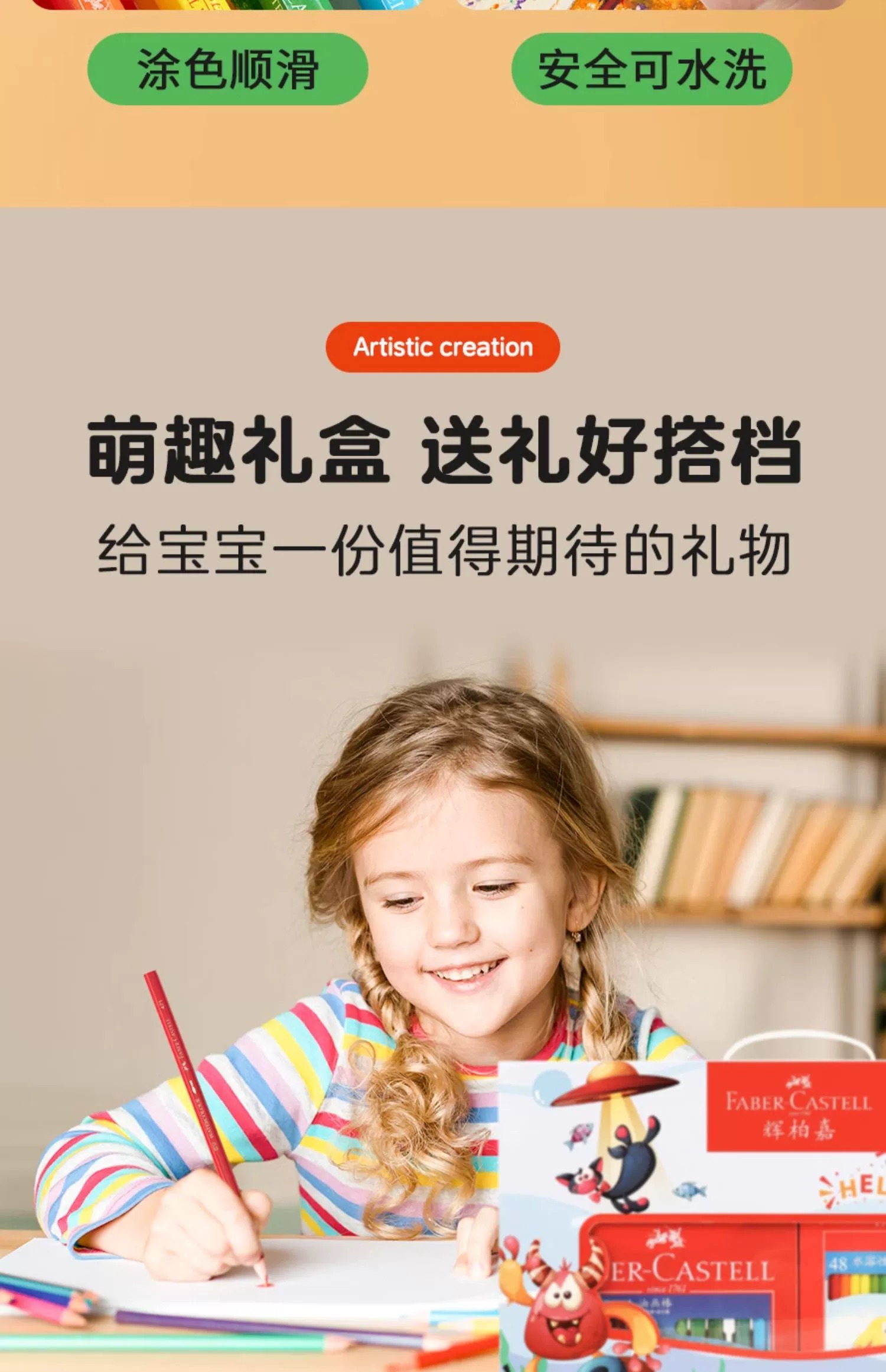 德国辉柏嘉儿童绘画礼盒水溶彩铅油画棒固体水彩套装小学生初学专用彩铅专用纸